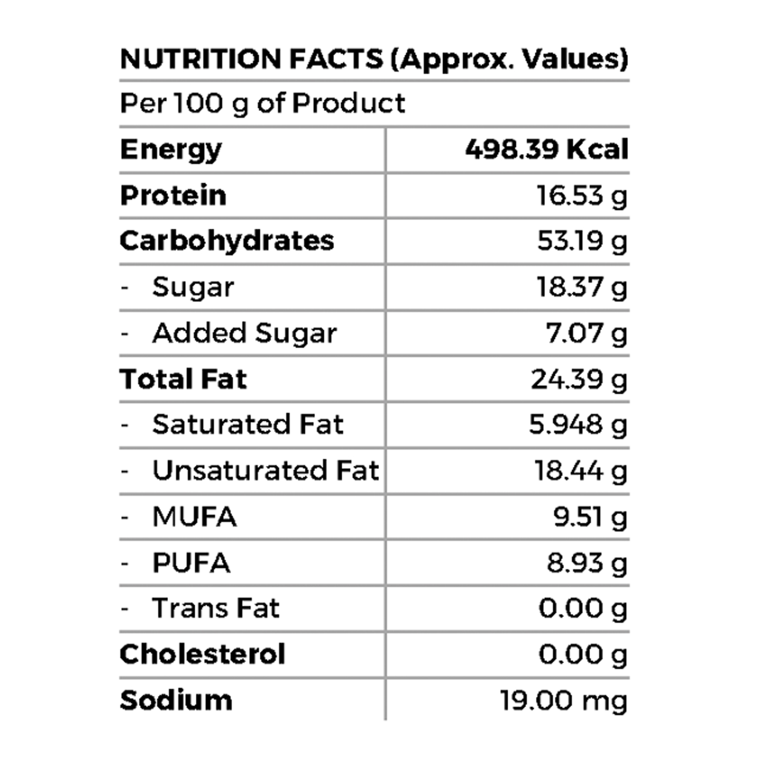 Nutty Loaded Granola - a delicious mix of whole rolled oats, dry fruits - almonds & raisins, trio of omega rich seeds - sunflower , pumpkin, flax and medium-chain triglycerides (MCT) rich coconut oil. It's lightly sweetened with organic honey, coconut sugar and baked to perfection, resulting in a crunchy, satisfying texture that pairs perfectly with milk, yogurt, or your favorite non-dairy milk.Whether you're looking for a quick and easy breakfast on-the-go or a tasty snack to satisfy your cravings, this wholesome cereal is the perfect choice. It's high in protein and a great source of fiber, making it a nutritious and delicious option for busy mornings or for midday pick-me-ups.