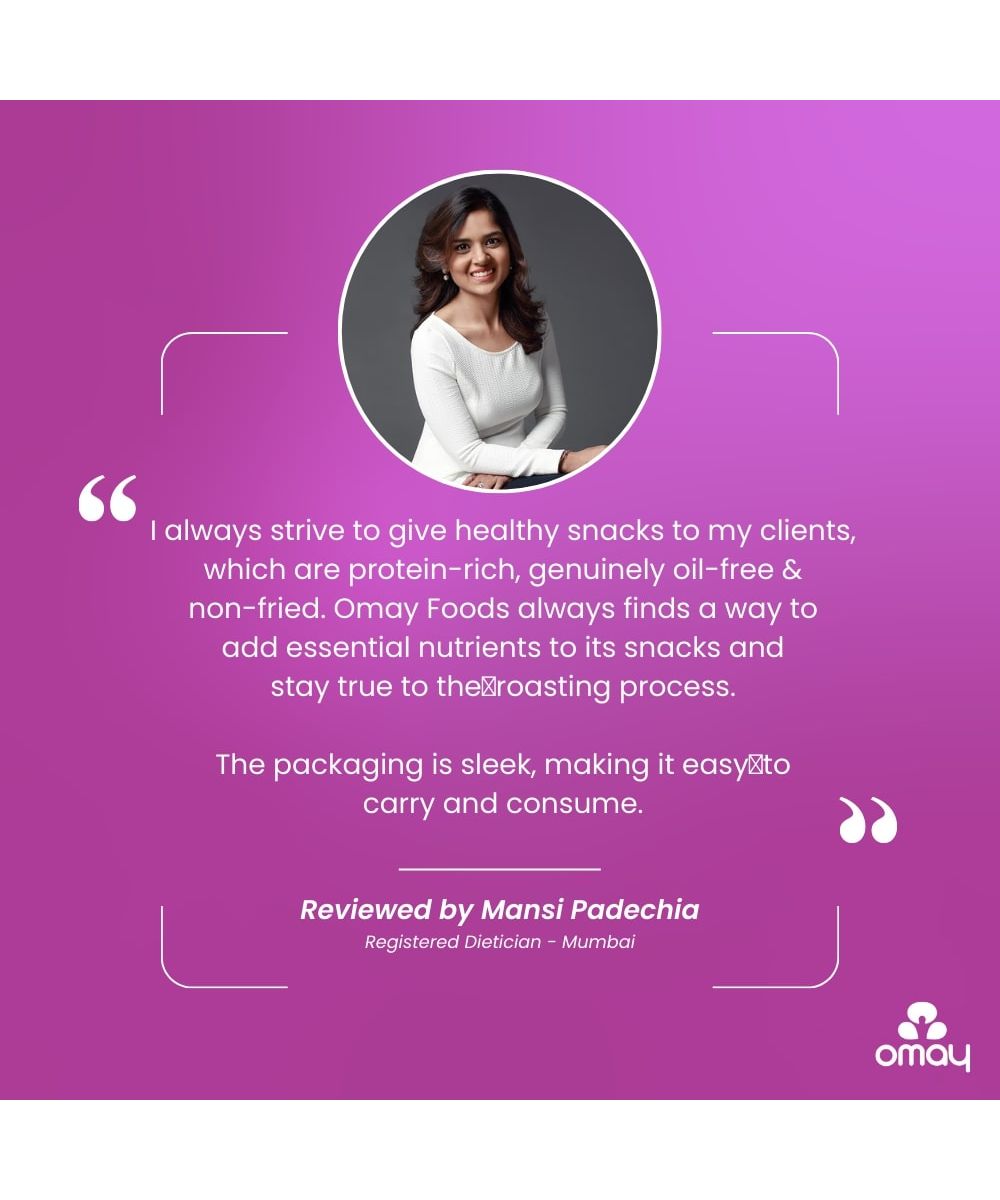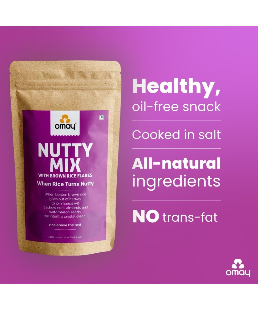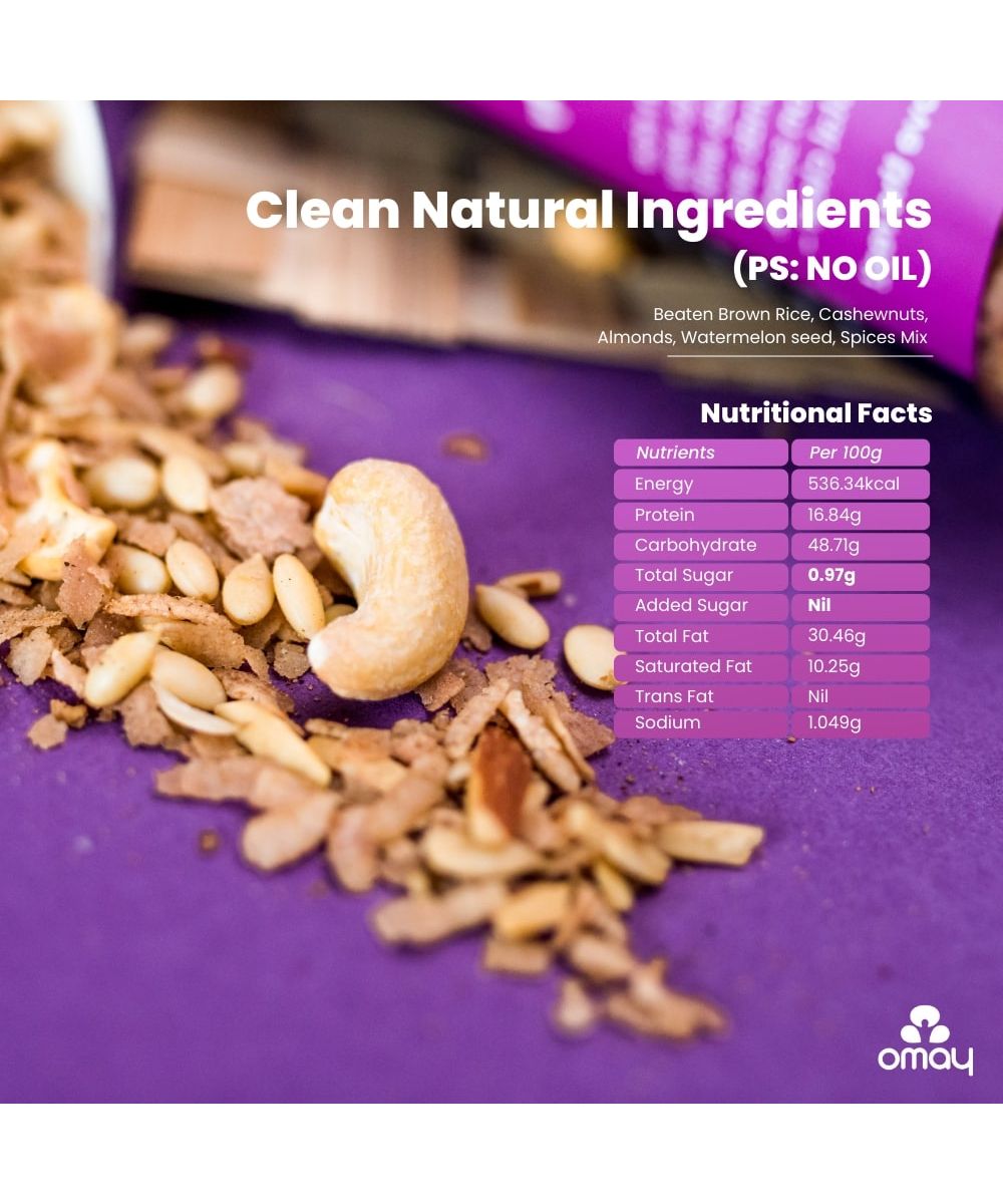Made using Rajasthan's Roasting process, this snack in COOKED IN SALT with no use of oil or butter. Seasoned with NATURAL herbs & spices, Omay's Nutty Mix is super crunchy, delicious and something to binge on guilt-free, anytime anywhere. 100% roasted, non-fried snack.