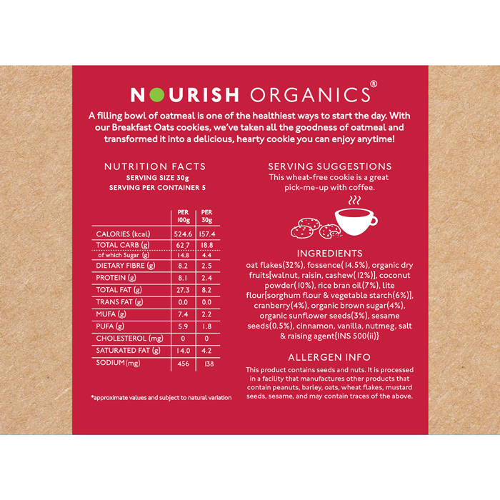 Nourish Organics Oats Cranberry Cookies - 120 gm