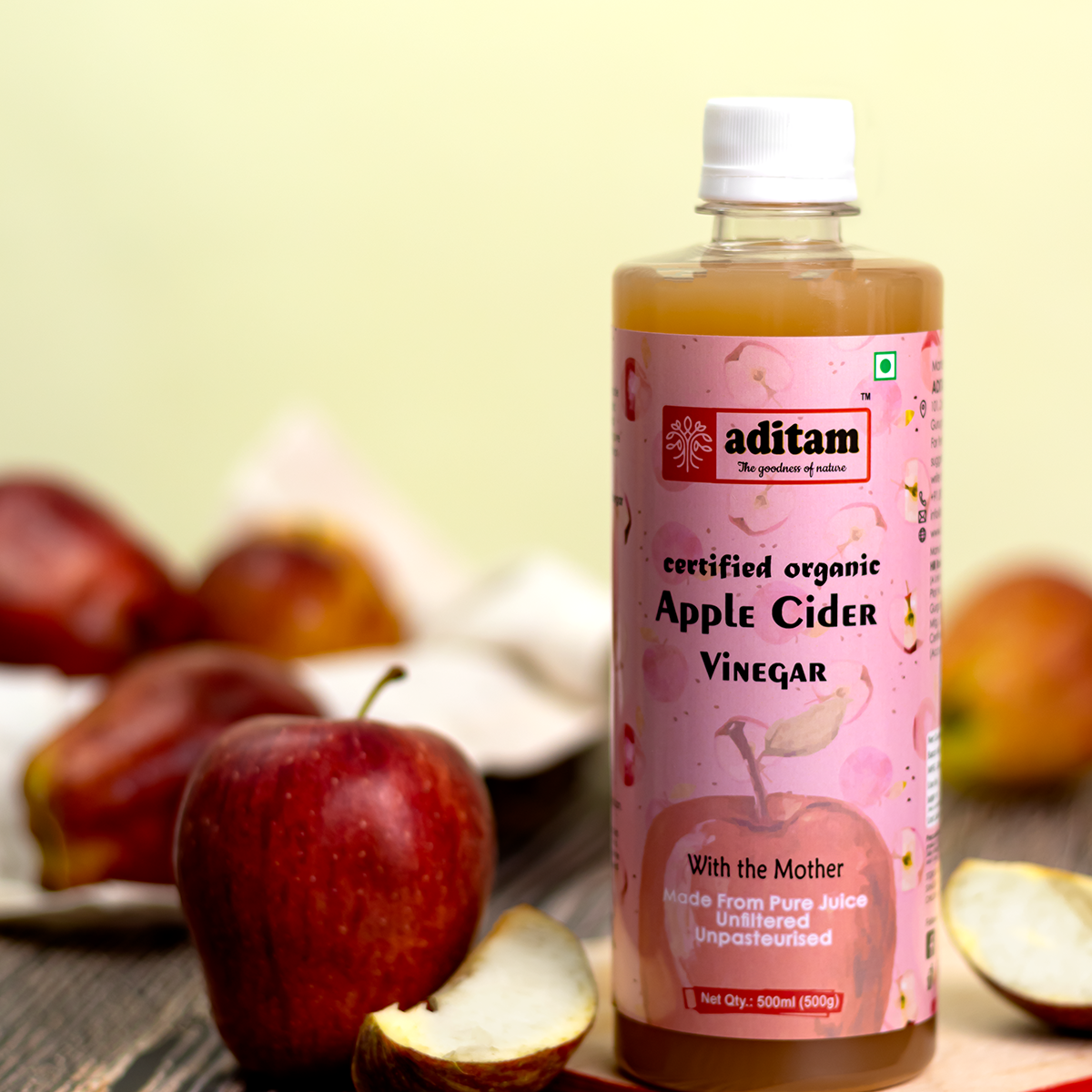 Aditam's Apple Cider Vinegar contains 4.8% acetic acid, which builds your metabolic rate, accordingly assisting you with burning fat. The high fibre content of the delicious Himalayan Apples prompts less indigestion compared with ordinary ACV.