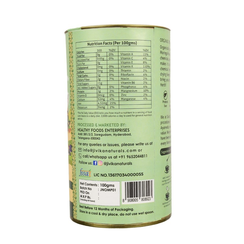 Native Moringa leaves are hand-picked from the fields of Rajasthan, sun-dried naturally, and brought to you in a convenient powdered form. This Ayurvedic superfood is a 100% vegan, non-GMO product with no additives or adulterants.