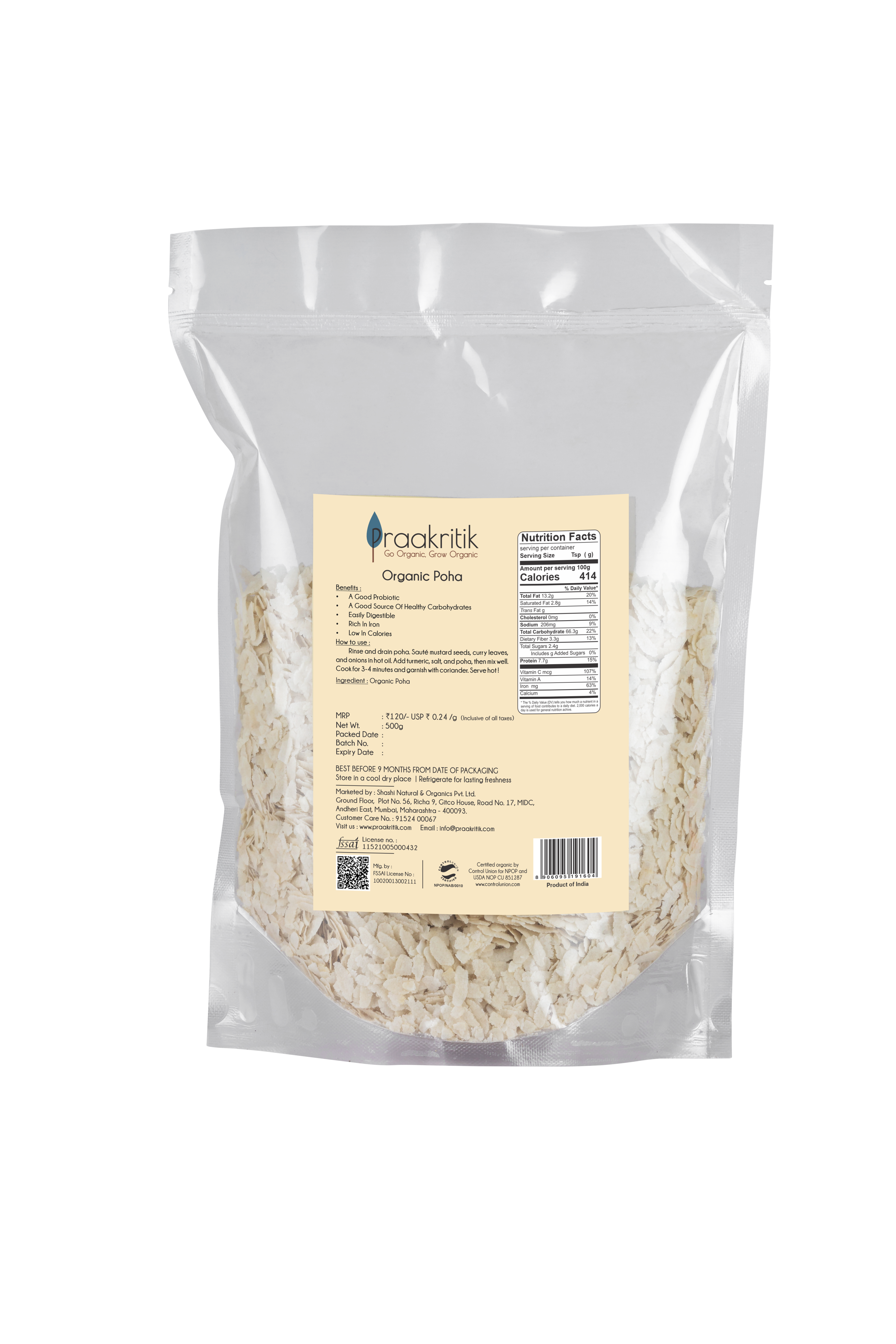 Low in calories and made from the finest dry husk rice, this guilt-free indulgence is healthy, delicious and gluten-free. It has approximately 76.9% of carbohydrates and 23% fat, which makes it an ideal food choice, for those seeking to lose weight. It is a good source of iron, fiber and essential vitamins.