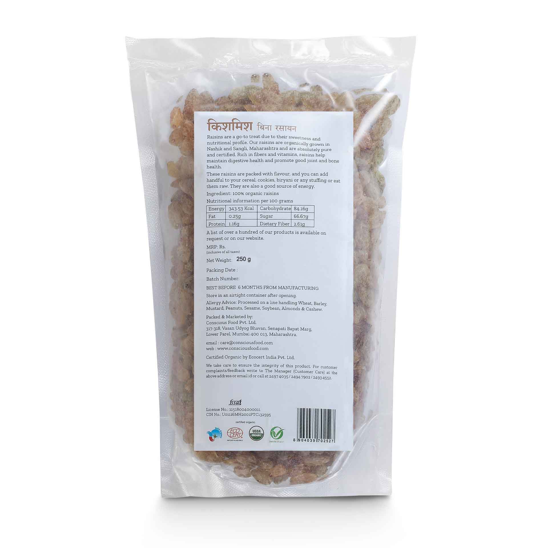 Conscious Food Organic Raisins 250g