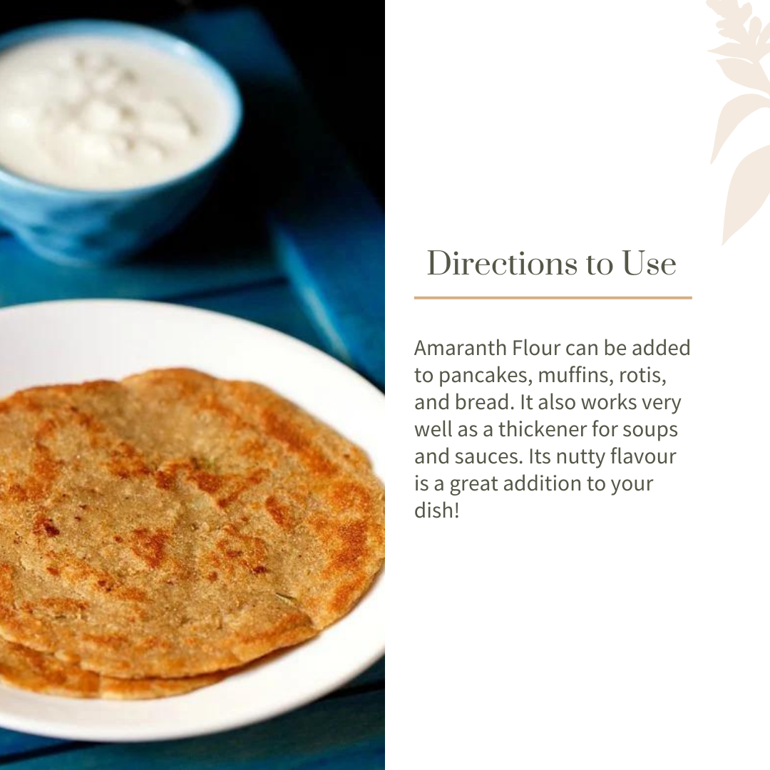 Amaranth Flour can be added to pancakes, muffins, rotis, and bread. It makes for a lip-smacking addition to any dish of your choice.