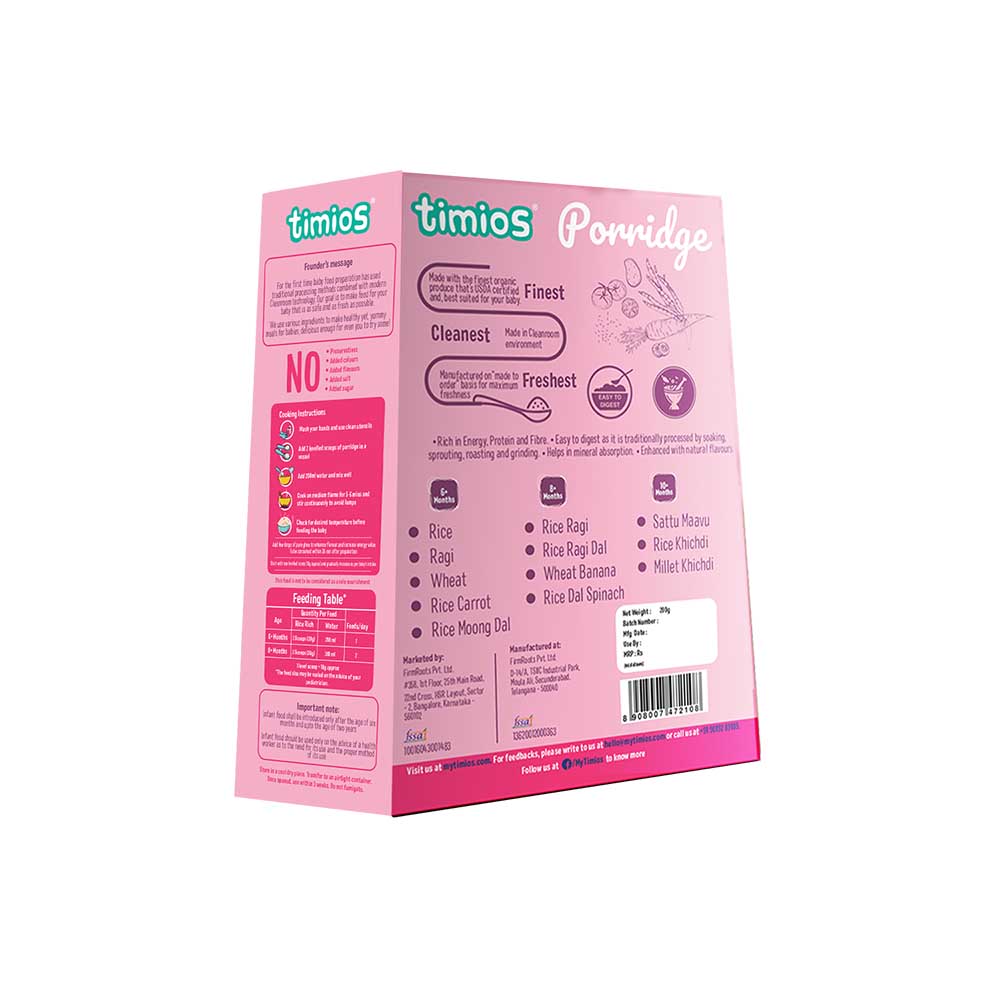 Traditional Food for infants, prepared in hygienically clean room environment, just in time manufacturing with organic ingredients. This healthy and nutritious food is specially made for 6+ Months babies.