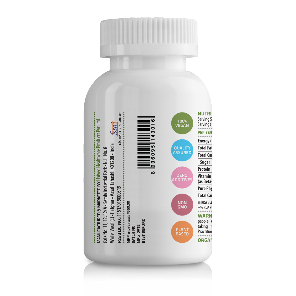 Organic Spirulina is one of the most most bio-available sources of vegan protein that is easily absorbable. It contains a blue-pigment protein called Phycocyanin, which plays a role in supporting our immune system. The Organic Spirulina we use also contains natural Beta-carotene, Chlorophyll, and various Phospholipids which help prime our immune system and protect against allergies.