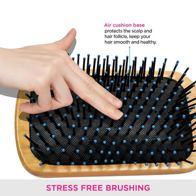 The VEGA Paddle Brush E1-PB is an ideal choice for daily hairstyling and brushing needs. This wooden paddle hair brush is designed to smoothly de-tangle your hair and make them look shiny each day, every day. It also has ball-tipped nylon bristles that give you a soothing massaging effect and leave your scalp nourished. Great for smoothening, adding shine, and de-tangling the knots, this wooden paddle brush for hair is suitable for medium to long hair. Coming with a black non-slip grip, this paddle brush makes sure you have a close hold on it while styling hair.