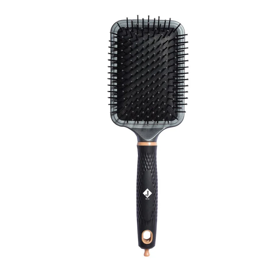 This beautifully designed classic paddle brush features a cushioned bristle bed that glides effortlessly through the hair to eliminate tangles for a sleeker hair appearance. Soft, flexible pins gently style & shape your hair, while rounded ends protects hair & scalp from damage. Must have for...