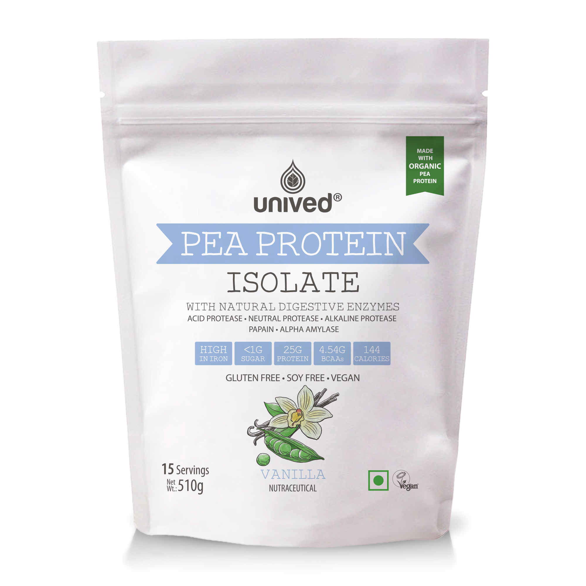 A Complete Vegan Protein for Muscle Repair & Maintenance Pea Protein is a rich source of BCAAs (Leucine, Isoleucine and Valine) which are of particular interest to athletes. Each serving of Unived Pea Protein delivers 4.54g natural occurring BCAAs to ensure that your workouts are optimally energised, and that your bodys resources are effectively utilized towards the goal of building lean muscle mass & muscle thickness like whey protein. As a completely plant-based protein, our pea protein has an extremely high digestibility of 98%, making it a rich source of highly bio-available and easily accessible amino acids.