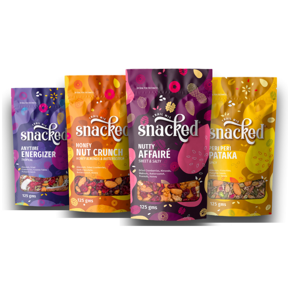 This is the combo of 4 products which includes Peri Peri Pataka, Anytime Energizer, Honey Nut Crunch and Nutty Affaire. Peri Peri Pataka is a delicious blend of pumpkin seeds, pistachios , almonds and sunflower seeds slowly roasted with finger licking chilli , lemon + peri peri mix ! Will keep you asking for more - our top selling item this season, Anytime Energizer is perfect for someone looking for a naturally sweet kick in the day, a delicious mix of coconut flakes, cranberries and cinnamon almonds. What's so healthy about it ? energy: this product comprises of metabolism boosting nutrients like vitamin e and magnesium, perfect pre-workout snack to keep you pushing your boundaries on and off the field and Honey Nut Crunch is the sweet trail mix which does its job while you munch away. It is a mix of nuts and seeds, but we would almost say have it for dessert! this superfood mix comprises of nutrients and antioxidants in perfect balance to help you recover from gruelling workouts and work weeks! heal yourself from within. Almonds: aids in muscle recovery, Nutty Affaire is product is the ultimate immunity boosting munchy. It is a mix of nuts and seeds with a sweet undertone. Almonds dipped in honey, with a mix of butterscotch - balanced with a slight sour taste of cranberries makes this the perfect summer snack! what's so healthy about it?immunity: