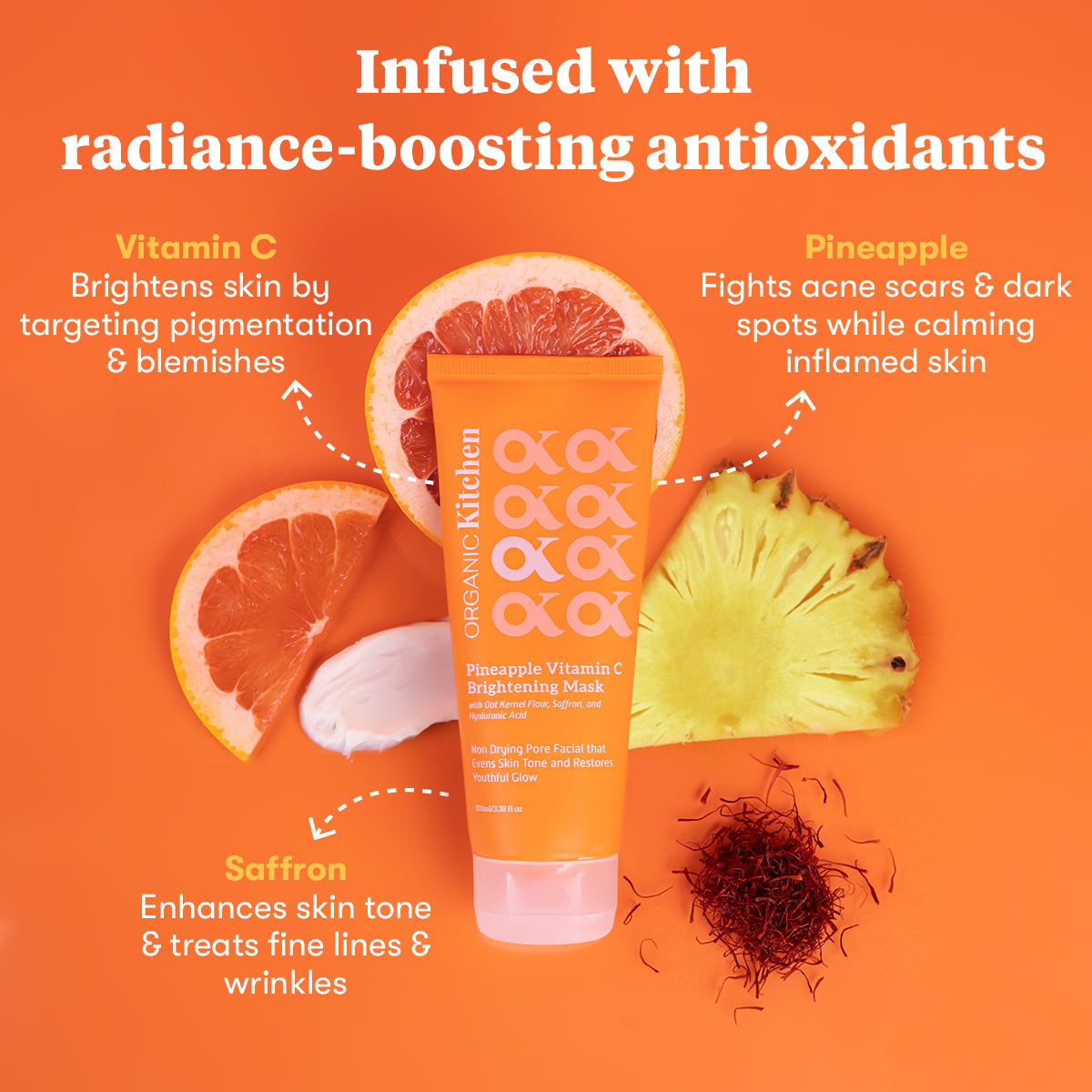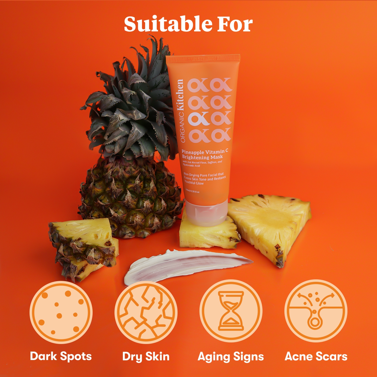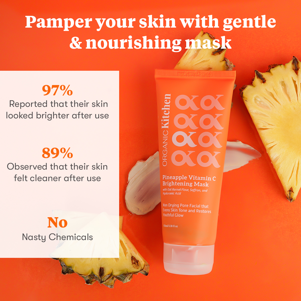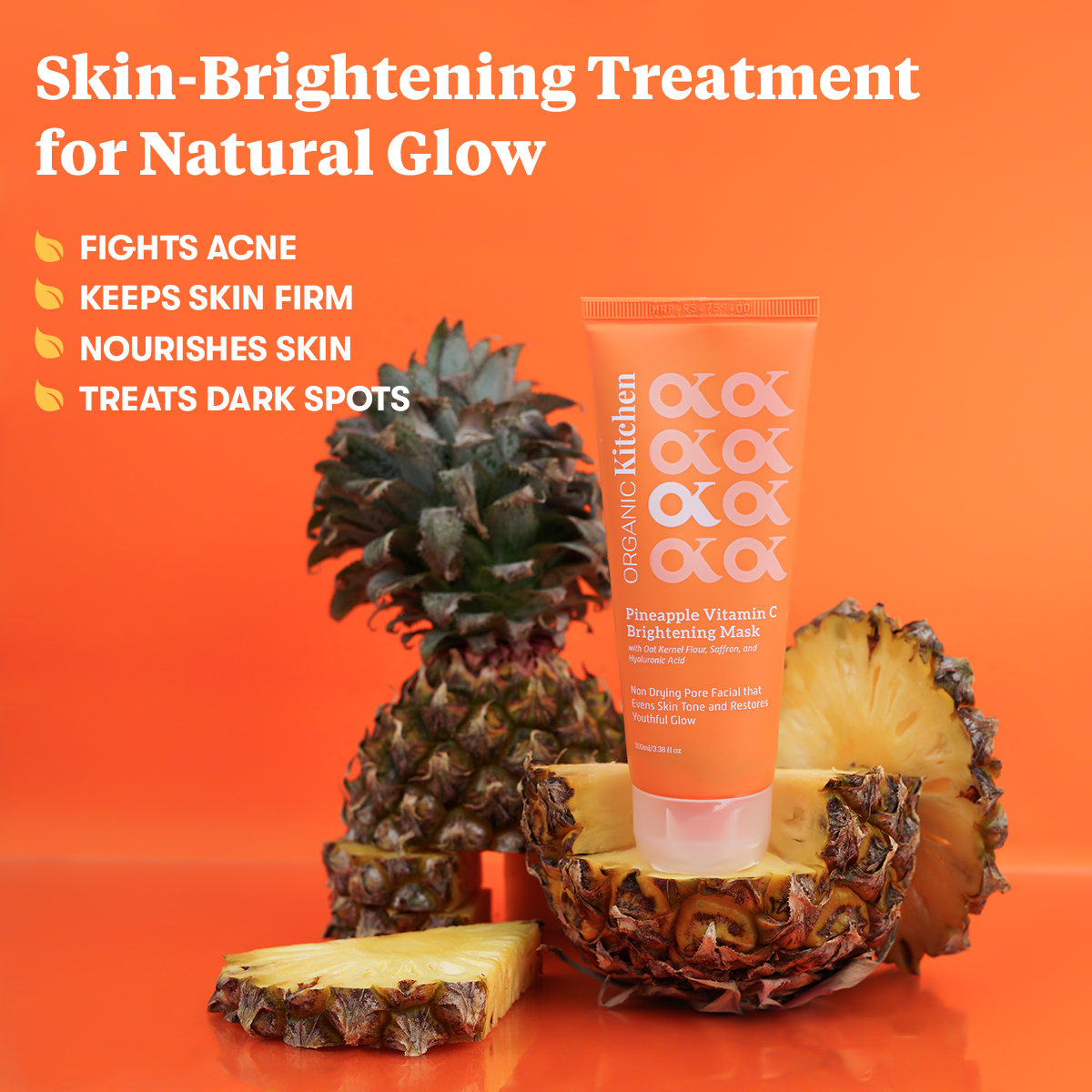 Pineapple Vitamin C Brightening Mask is perfect treat if you have a dull skin that is yearning for some hydration and glow that is infused with the 100% natural extracts and goodness of vitamins. This brightening face mask is blended with vitamin C and goodness of 100% real pineapple extracts. This will not only leave your skin feeling hydrated but will help you get that clear glowing skin.