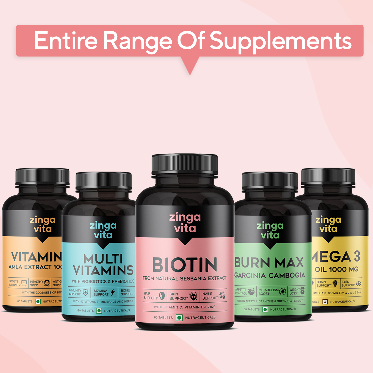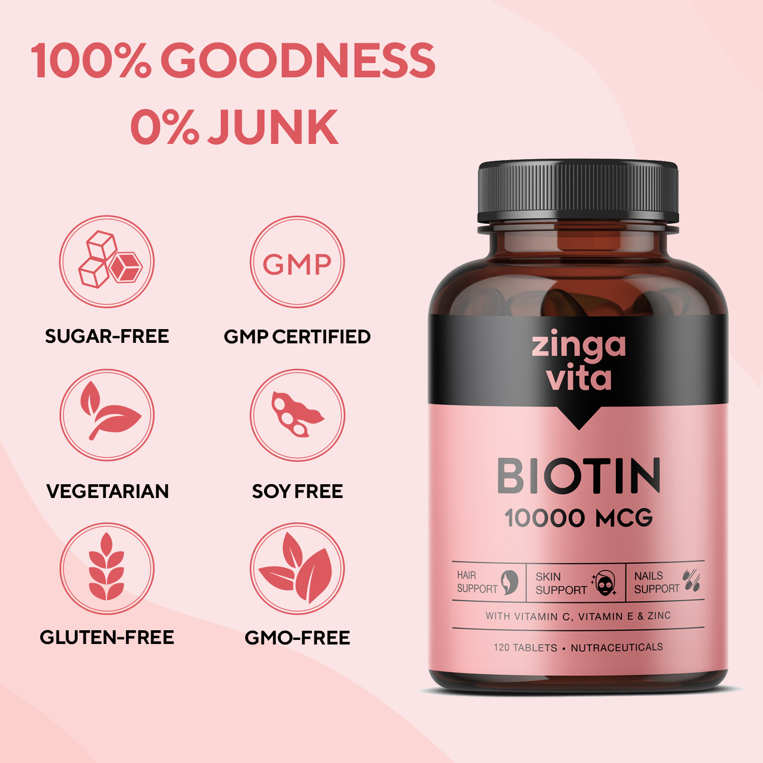 Want To Know How To Get Gorgeous Full Looking Hair, Radiant Skin And Beautiful Nails? Biotin Is A B Complex Vitamin That Metabolizes Fats, Proteins, And Carbohydrates. Zingavita Sugar Free Biotin Tablets Boost Hair And Nail Growth And Makes Them Strong. Just Pop One Tablet Every Day For Head-To-Toe Natural Beauty.