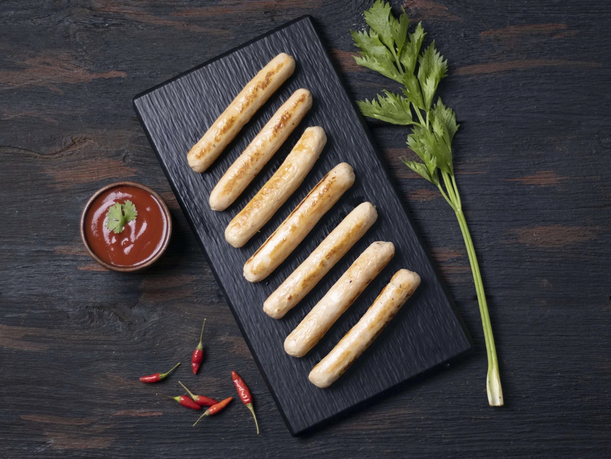 100% vegetarian Plant-based Smoked Chicken Sausage that tastes exactly like Chicken! This product is Soy Free. The breakfast sausage you have been looking for is finally here!