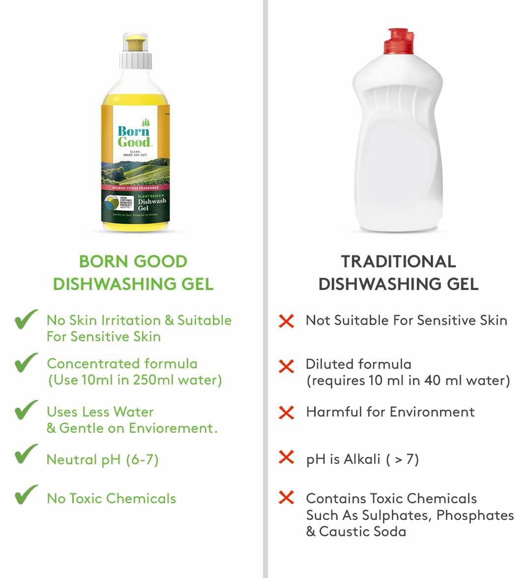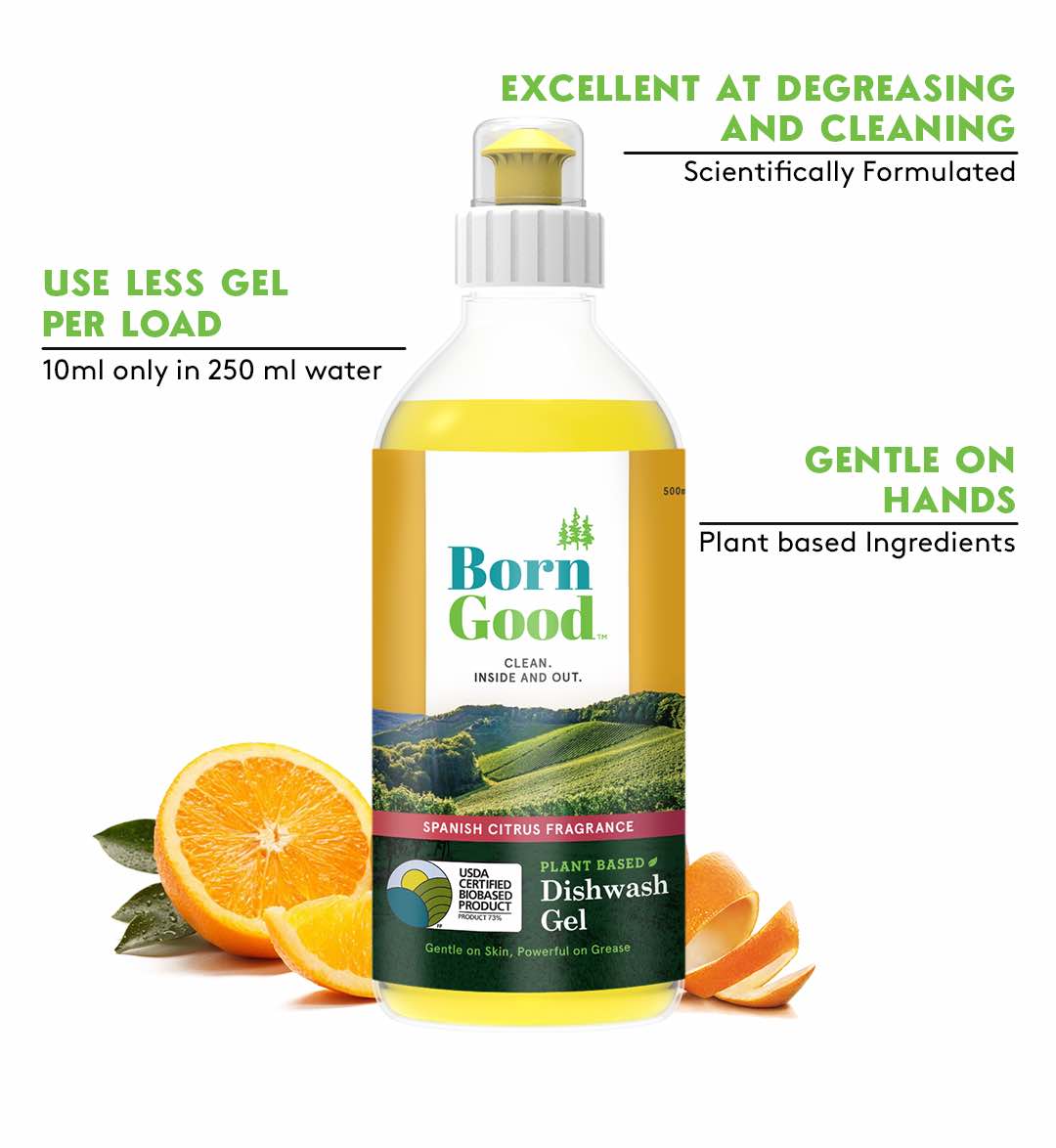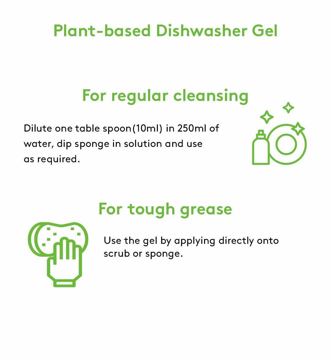 This highly concentrated formulation of powerful plant-based ingredients make this dish-washing gel as tough on grease as it is gentle and safe on your hands. That means, squeaky clean dishes without the side effects of itchy hands, flaky skin or chemical irritation. It eep cleans and degreases kitchenware and utensils effectively, using minimal water due to its concentrated formula and leaving no malodours or sticky residues behind.