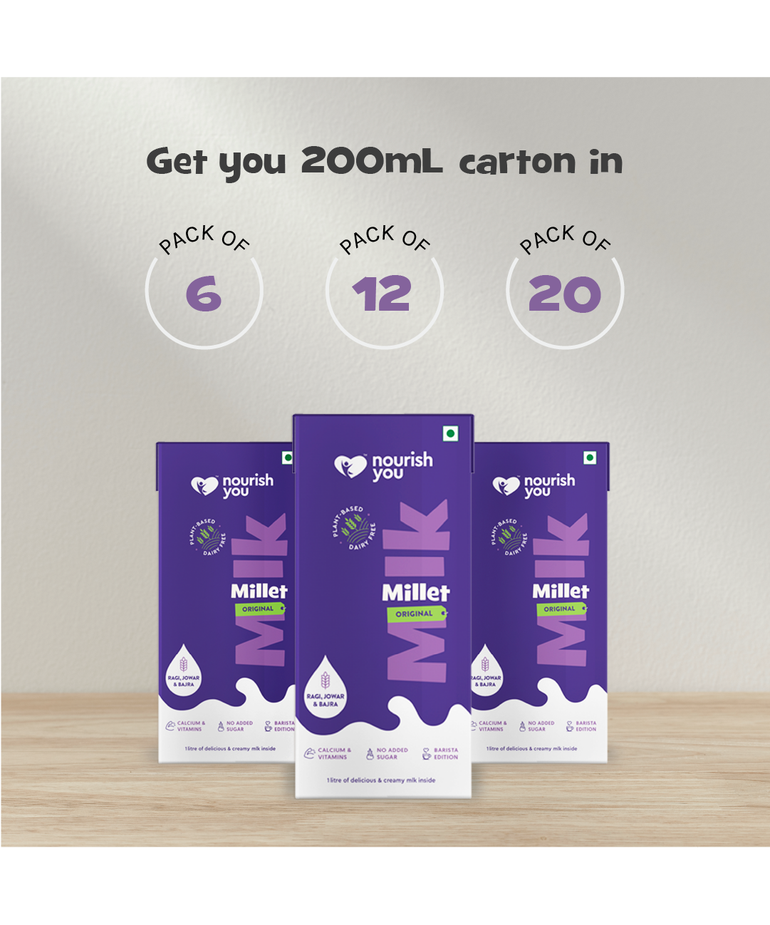 Introducing Nourish You's Organic Millet Milk a wholesome, plant-based alternative that redefines the way you enjoy dairy-free goodness. Carefully crafted from the finest organic millets, this nutrient-packed milk is a delicious and versatile addition to your daily routine.Our millet milk is a powerhouse of nutrition, boasting essential vitamins, minerals, and antioxidants. Packed with calcium and vitamin D, it promotes strong bones and teeth, making it an excellent choice for those seeking a dairy-free calcium source. The natural sweetness of millets gives this milk a delightful taste without the need for added sugars, making it a guilt-free indulgenceVersatility is at the heart of Nourish You's Millet Milk. Froth it for a creamy latte, pour it over your morning cereal, or use it as a base for smoothies and desserts. Its subtle, nutty flavor enhances both sweet and savory dishes, offering a unique twist to your culinary creations.Embrace a healthier lifestyle with our Millet Milk, as it supports digestive health, aids in weight management, and is free from common allergens. Nourish your body with this organic, plant-powered elixir, and savor the taste of well-being with every sip. Experience the richness of Nourish You's Organic Millet Milk where wholesome meets delicious in every drop.