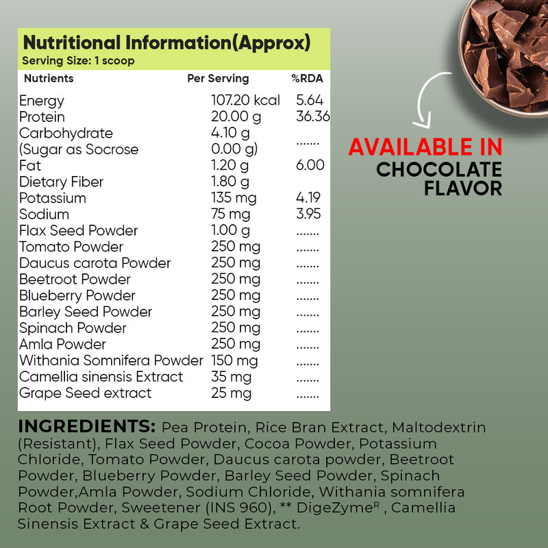 Our plant-based protein is 100% natural, made of non-genetically modified, organic ingredients like peas and packs over 20 grams of protein in each serving. It’s lactose-free, gluten-free, low fat and contains no added sugar. It completely vegan and contains all essential amino acids. It’s a holistic way to build strength and stamina and contains Vitamin C and antioxidants, which facilitate joint support. Available in a variety of attractive flavors, its affordable and helps in muscle building. It will definitely give a boost to your energy levels and contains digestive enzymes, which contribute towards over-all well being.