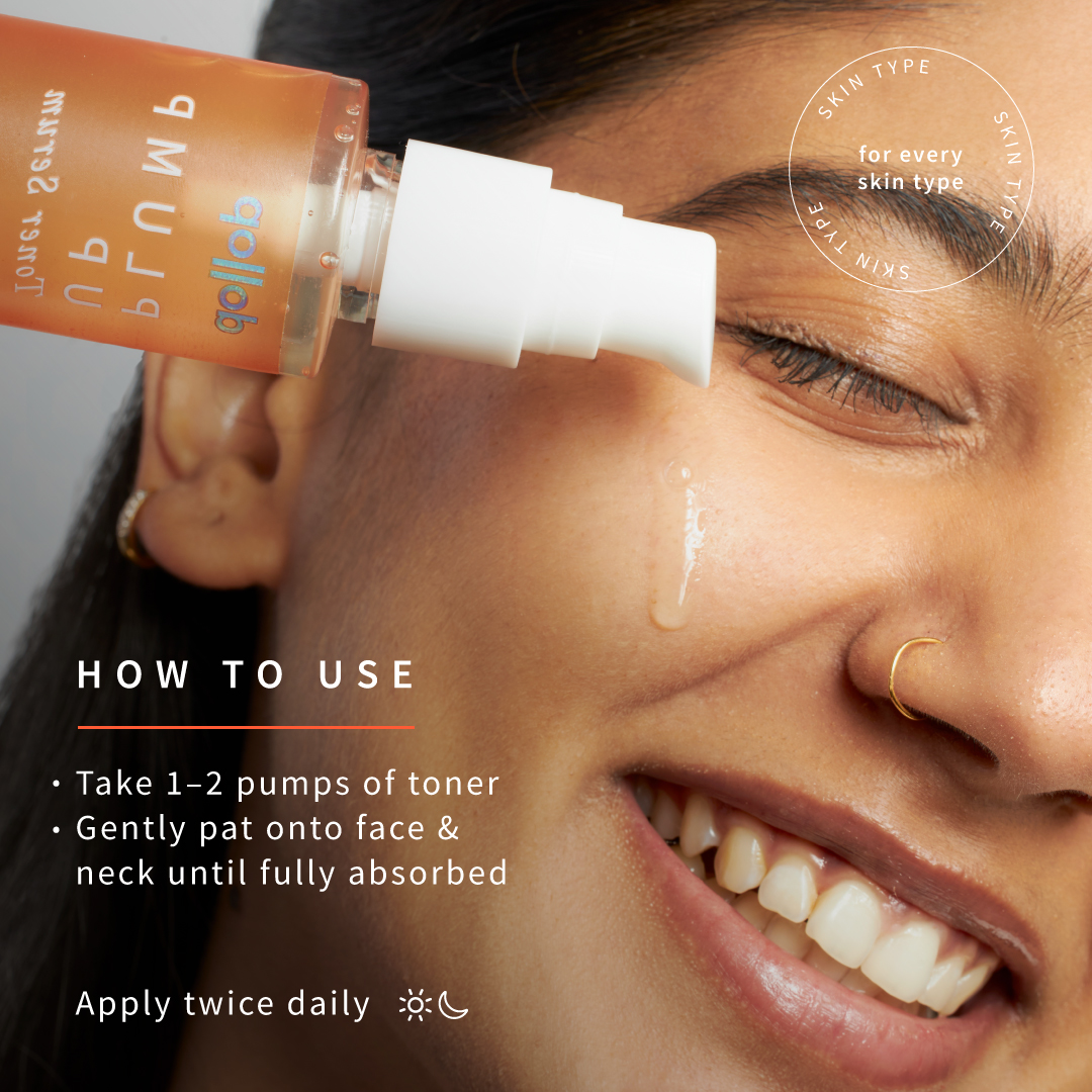 1. After facewash, take 12 pumps of toner2. Gently pat onto face & neck until fully absorbed3. Apply twice daily