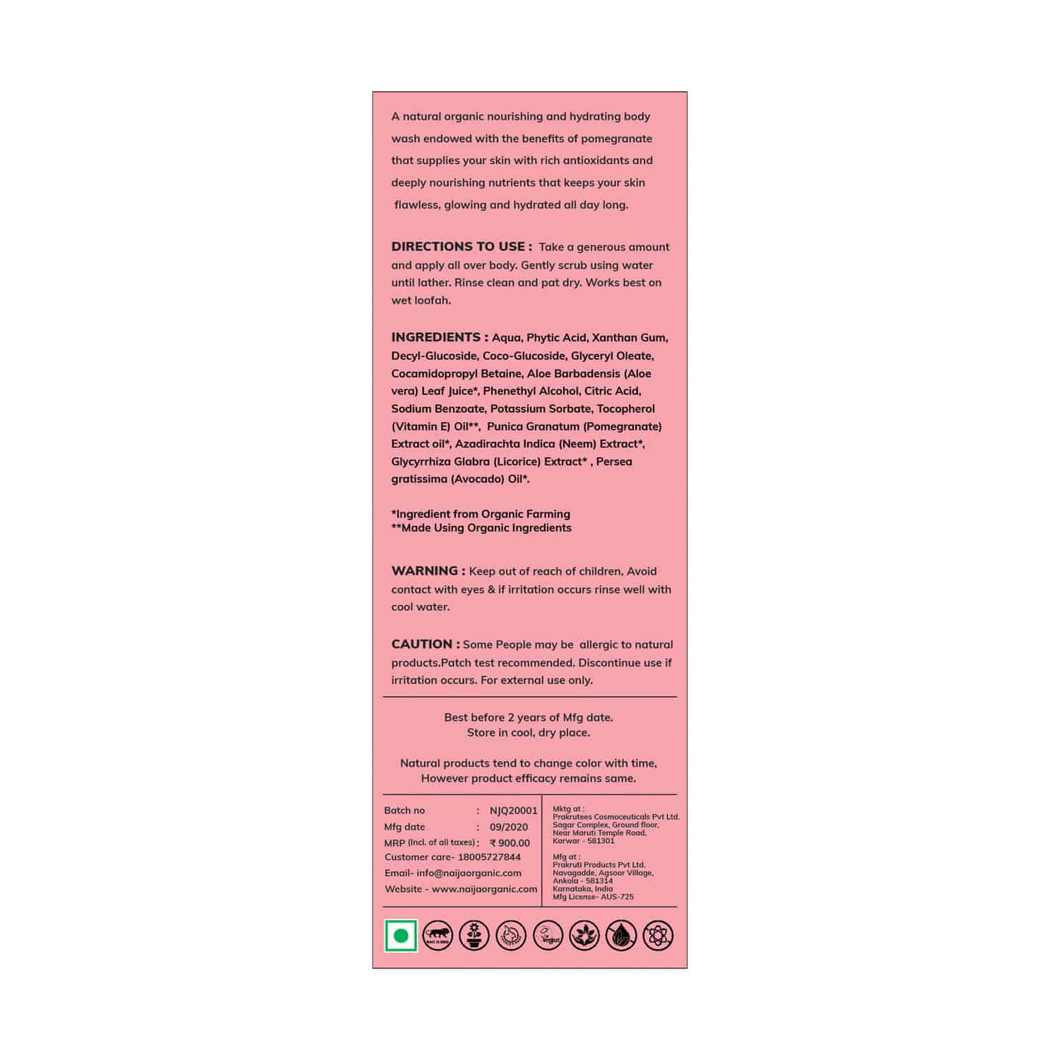 A natural organic nourishing and hydrating body wash endowed with the benefits of pomegranate that supplies your skin with rich antioxidants and deeply nourishing nutrients that keeps your skin flawless, glowing and hydrated all day long.
