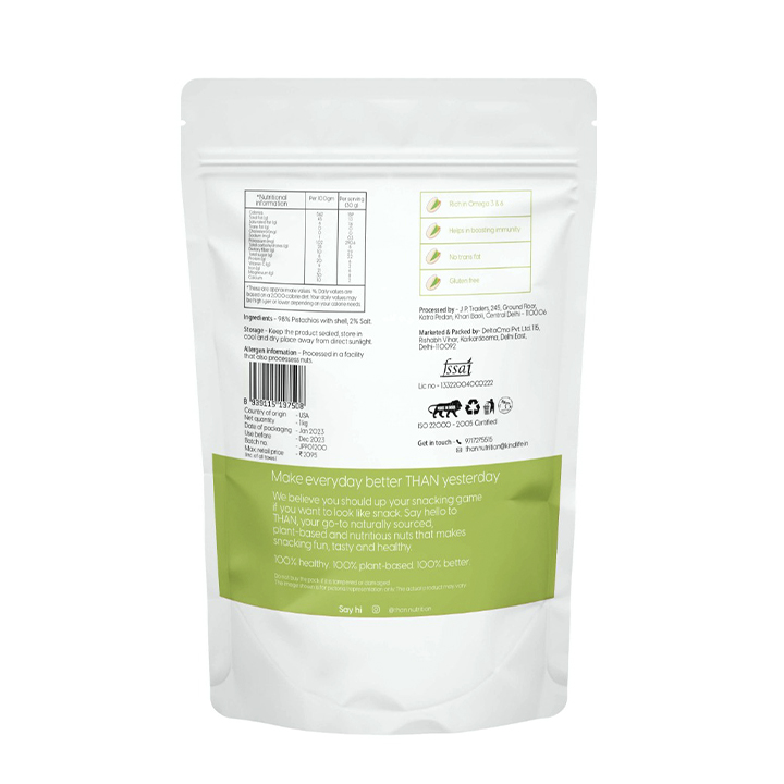 Make that healthy switch to the 5 PM snack with THAN premium range of gourmet Pistachios, specially created for your busy on the go life. Packed with a delicious flavor, lots of crunch, essential nutrients that are a great source of protein, aid Gut health and boost memory.