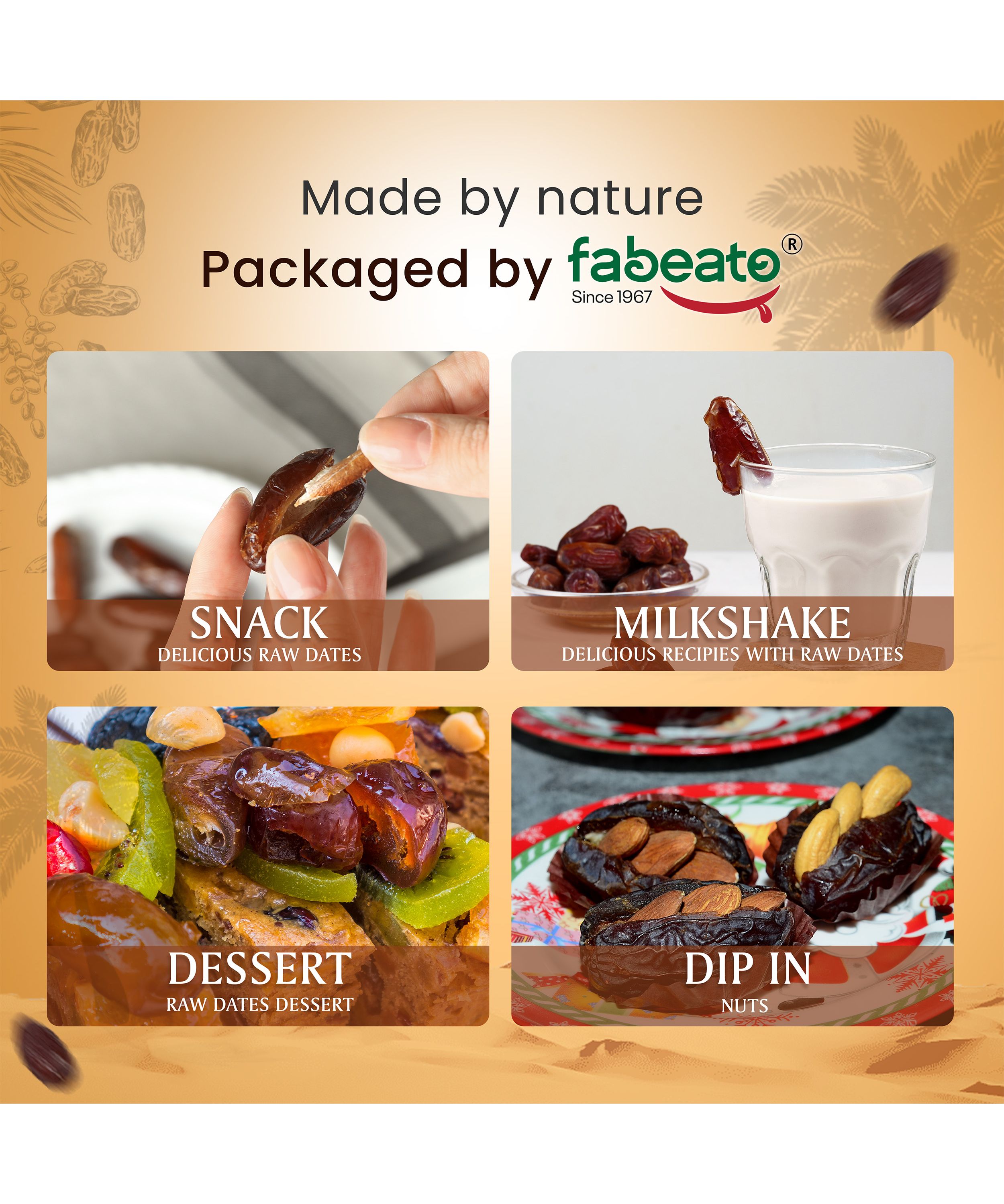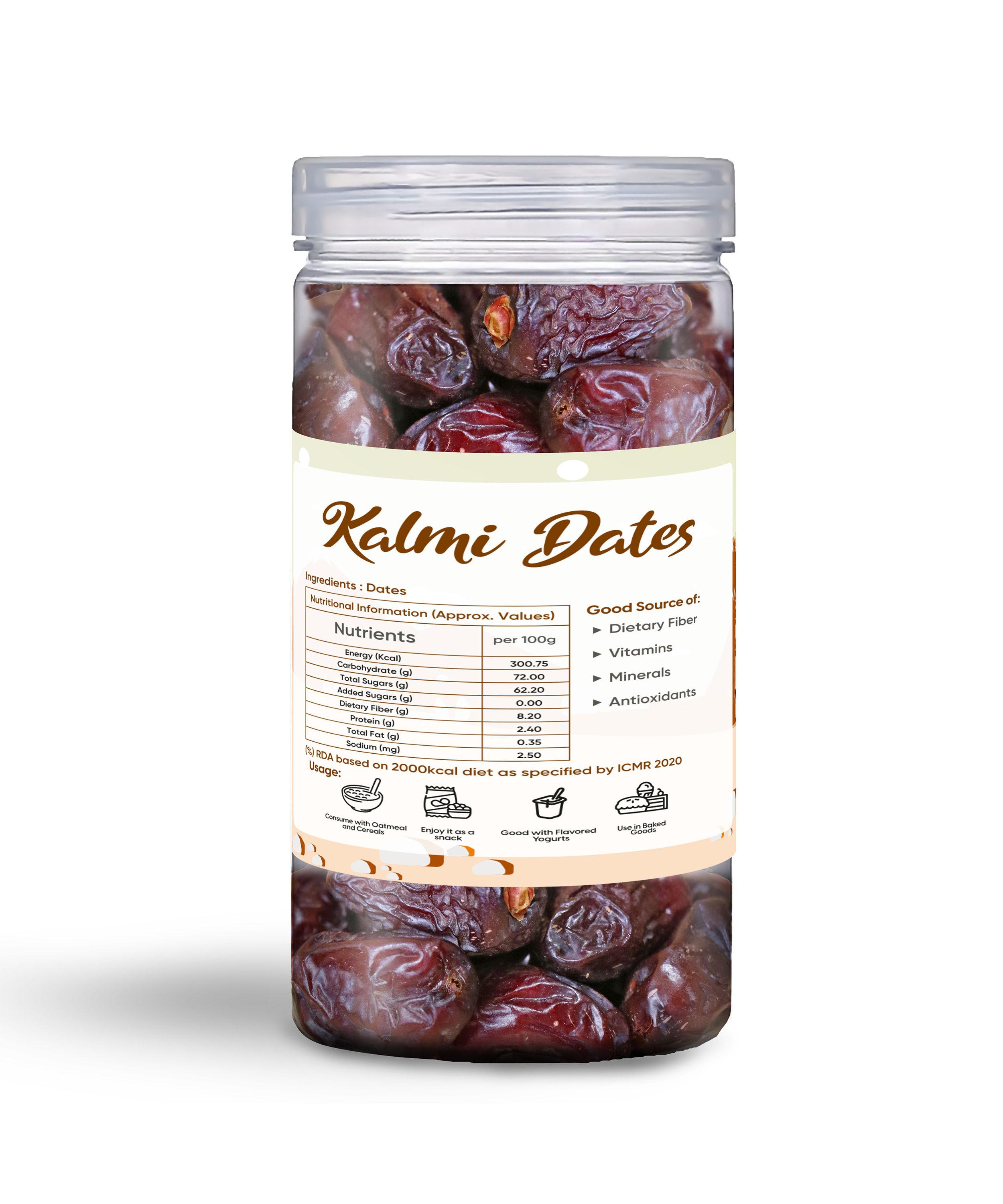 Deliciously Sweet & Nutritious: Our Kalmi Dates are naturally sweet, providing a wholesome, guilt-free snack thats packed with essential vitamins and minerals. Packed with Nutrients: Rich in fiber, iron, calcium, potassium, and antioxidants, these dates offer numerous health benefits, such as improved digestion and energy boosts. Great for Energy & Digestion High in fiber, and antioxidants, Kalmi dates help boost energy levels and support digestion. 100% Natural & Pure: Free from additives, preservatives, and artificial sugars. These dates are grown and harvested under the highest standards of quality. Perfect for Snacking & Recipes: Ideal for snacking on-the-go, adding to smoothies, or incorporating into your favorite desserts, salads, and savory dishes.