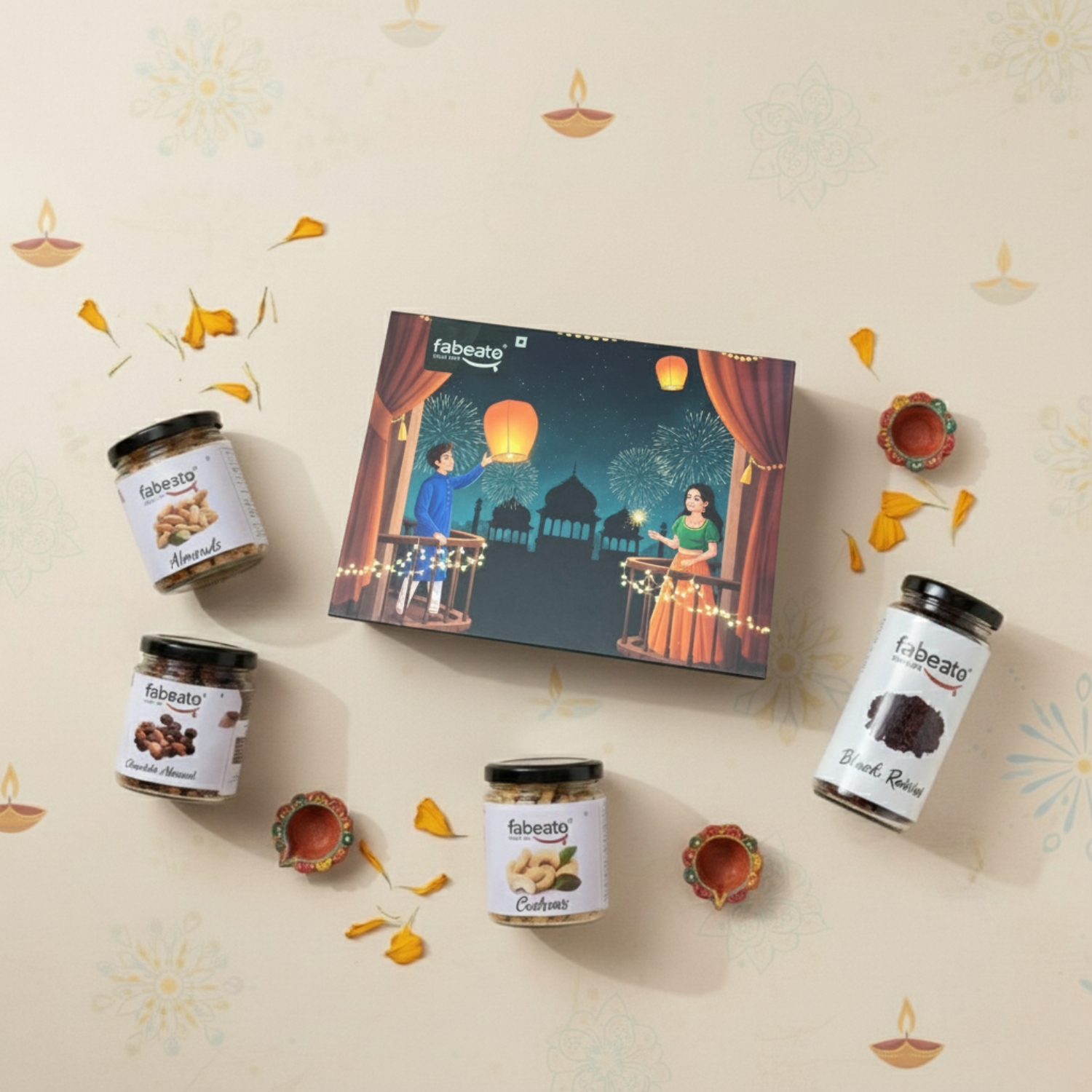 Custard special gift box contains : Premium Almonds 110g, Premium Cashew 100g, Premium Pista 80g, Green Raisins 130g, Trail Mix 120g.PACKED WITH NUTRIENTS : Our Fabeato Golden Special Gift box has a combination of Premium handpicked nuts and dry fruits that are nutrient rich, tasty and healthy!.TOKEN OF LOVE : Gifting loved ones with Fabeato Gift box is a perfect choice to share the love and happiness on their special occasion.PERSONAL AND CORPORATE GIFTING : Our Fabeato gift boxes are handcrafted, hygienically packed and its elegant design makes it as a perfect gifting choice for celebrating occasions and expressing appreciation.Perfect Gift For Your Friends & Family, Colleagues & Clients, Loved Ones. Celebrate The Festival Of Diwali By Gifting Healthy, Immunity-Boosting, Delicious Dry Fruits