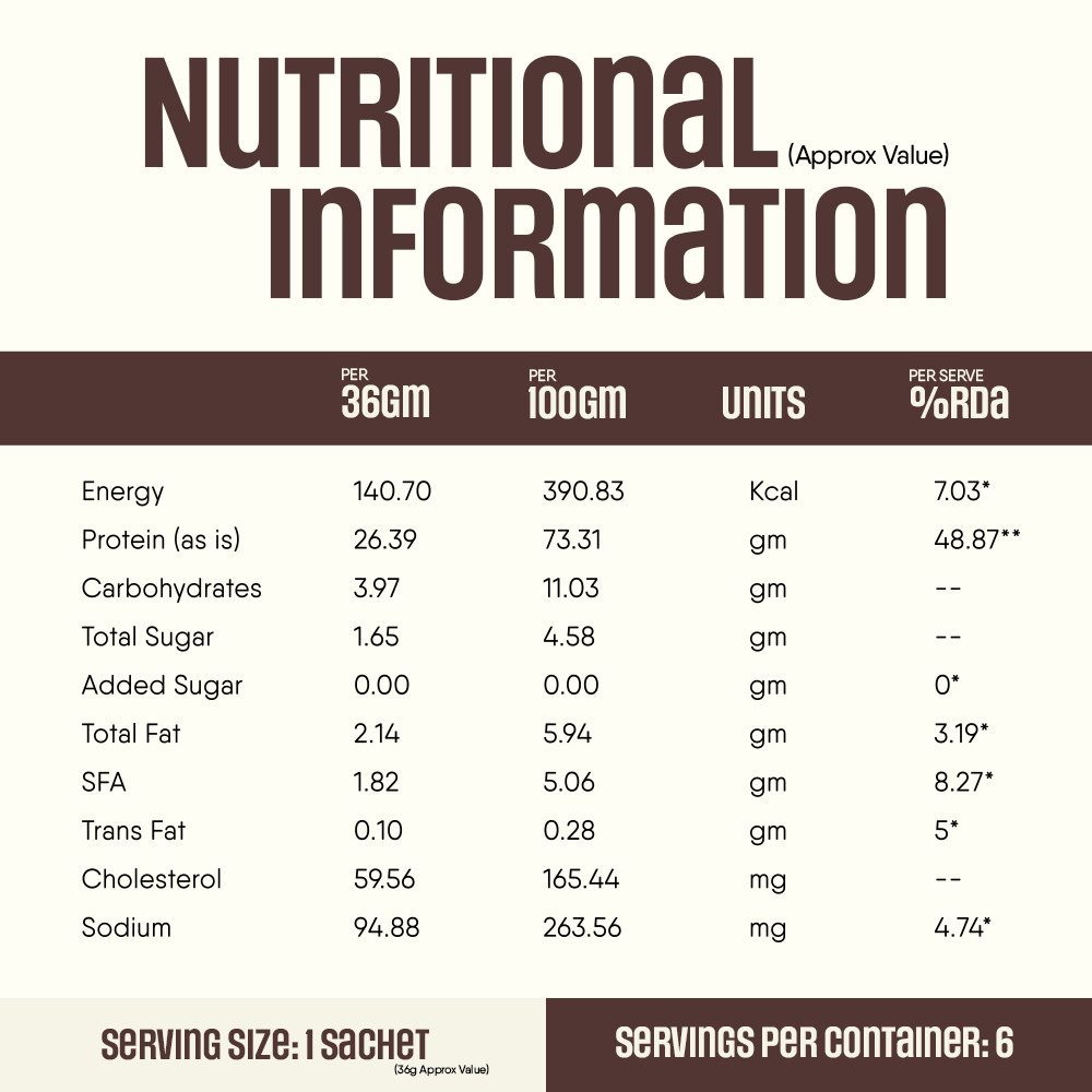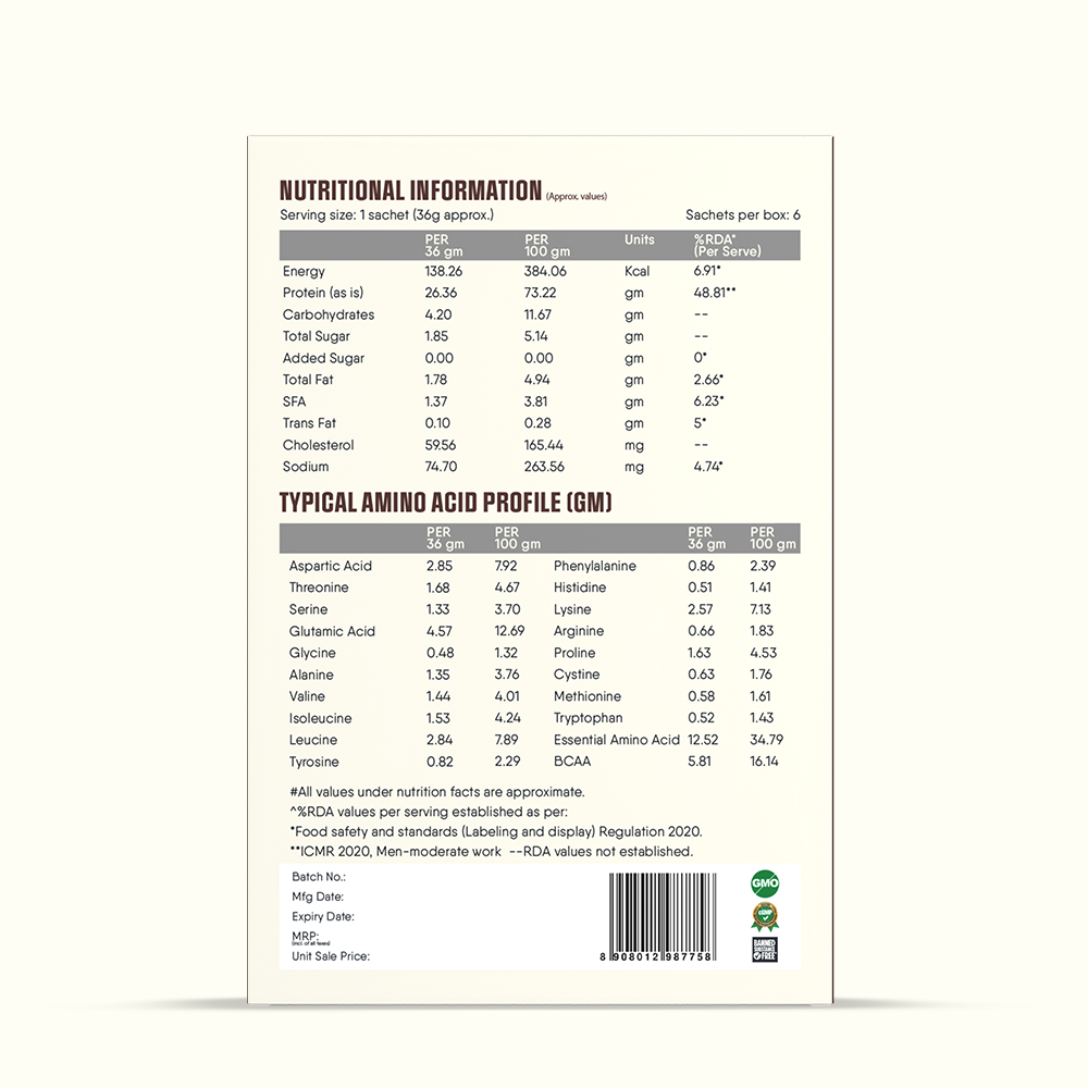 Trunativ Pro Blend Whey Protein combines Whey Protein Isolate and Concentrate for optimal muscle growth, strength, and recovery. Each 36g serving provides 26g of high-quality grass-fed protein and 6g of BCAAs to enhance muscle repair and reduce fatigue. Formulated with 100% natural ingredients, it's easy on the stomach and free from artificial additives. Naturally sweetened with Monk Fruit and colored with beetroot and turmeric, it delivers a delicious, creamy shake with real chunks of whole food extracts.
