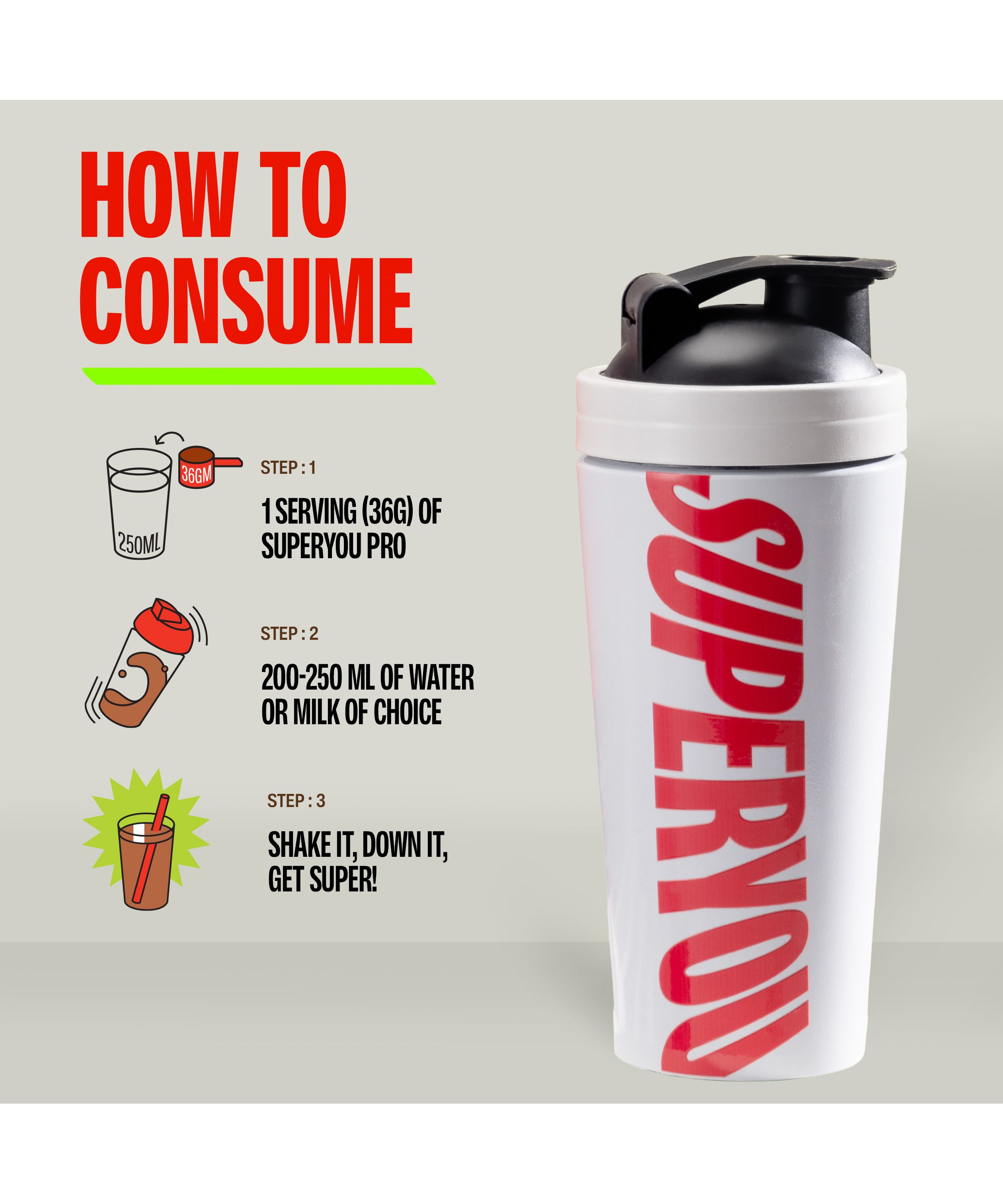 Introducing the future of protein: Complete Protein, which is GUT LOVING And Maaad Tasty!, Yeast has powered your favorite foods for centuries. Its what makes your sourdough rise and kombucha fizz. We transformed this nutrient-rich microbe into a product, one of the finest quality proteins that is efficacious and gut-loving. (link to blogpost going in depth about this). This process of bio-fermentation unlocks nutrient bioavailability and all the good bacteria from yeast. It all takes place in a precision-controlled environment, ensuring consistent quality with every single batch. No room for shortcuts or compromises. Just a clean, complete protein that loves your gains, your gut, and the planet, Each scoop of SuperYou Pro is packed with 24g of clean, complete protein that is highly absorbable and supercharged with natural digestive enzymes, prebiotics, and probiotics. No added sugar, no allergens like dairy or lactose, and absolutely no compromises. Is it a plant? Is it whey? We took the best of both these proteins and left the worst behind. Creating something that is naturally superior. Fermented Yeast Protein has the muscle-building power of whey. But without the dairy, discomfort, or doubt. It outperforms the clean, sustainable, and gut-friendly promise of plant protein, which is far more effective and tastes better. Weve skipped animals and bypassed plants. Creating a whole new world of protein that changes the game and checks all the boxes