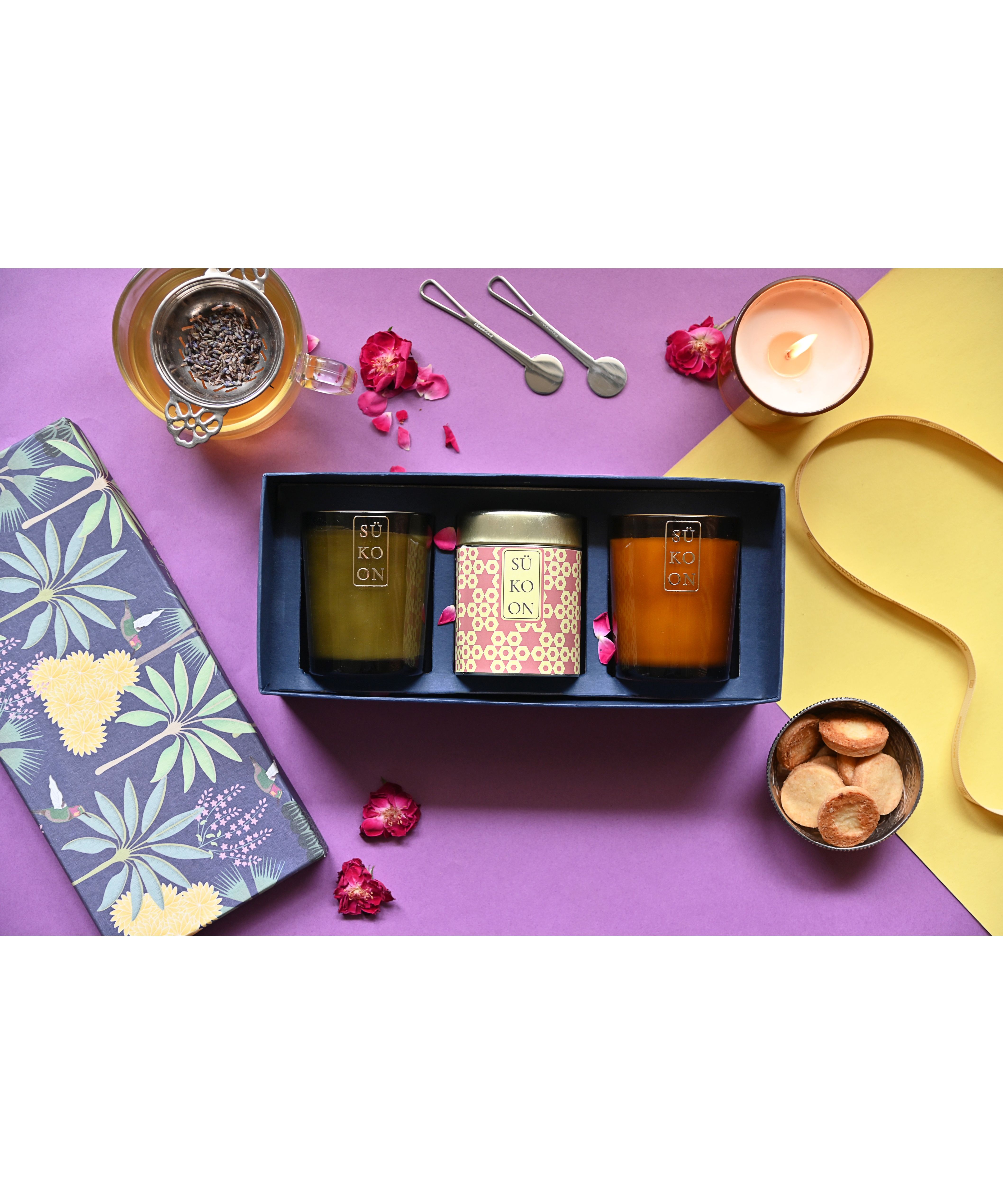 Two 200 Grams scented candle and 50 Grams loose Tea