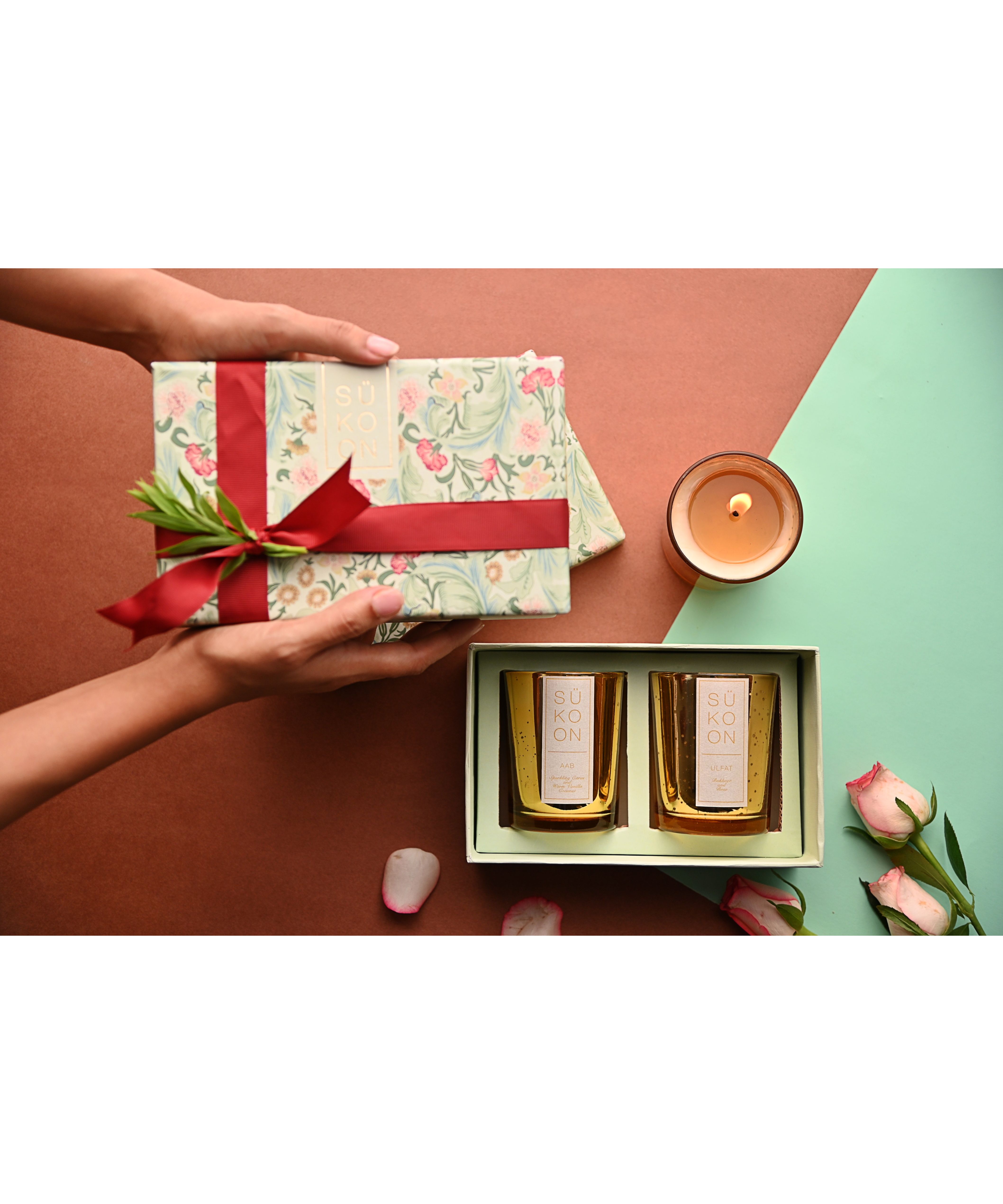 For a flame both literal and metaphorical, there can be no better choice than hand poured Sükoon candles. The box comes with two scented soy wax candles. Choose your choice from our collection of fragrances or leave the selection to us to set the mood.Includes: