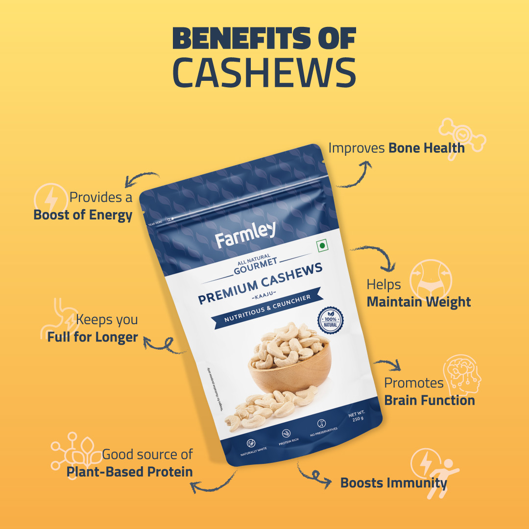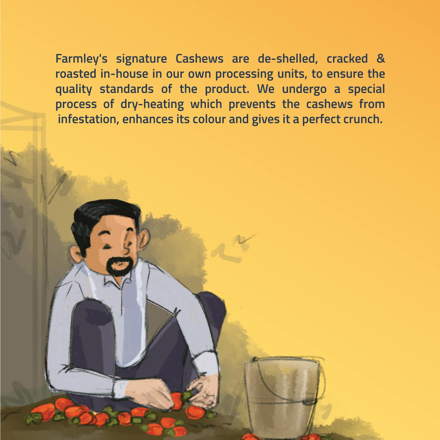 Direct from farm: Farmley Cashews come straight from the farm and undergo hygienic packing in an HACCP certified unit.Why Farmley Cashews: Cashews are meticulously handpicked, 100% natural, and free from any adulteration.