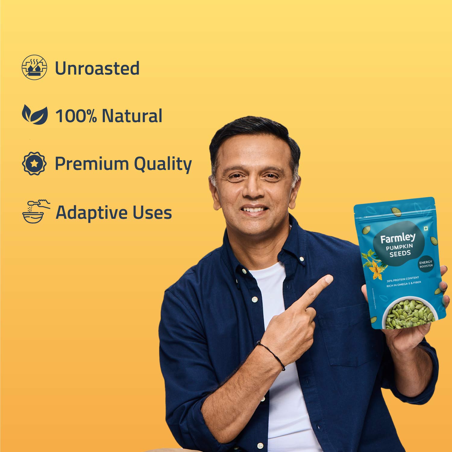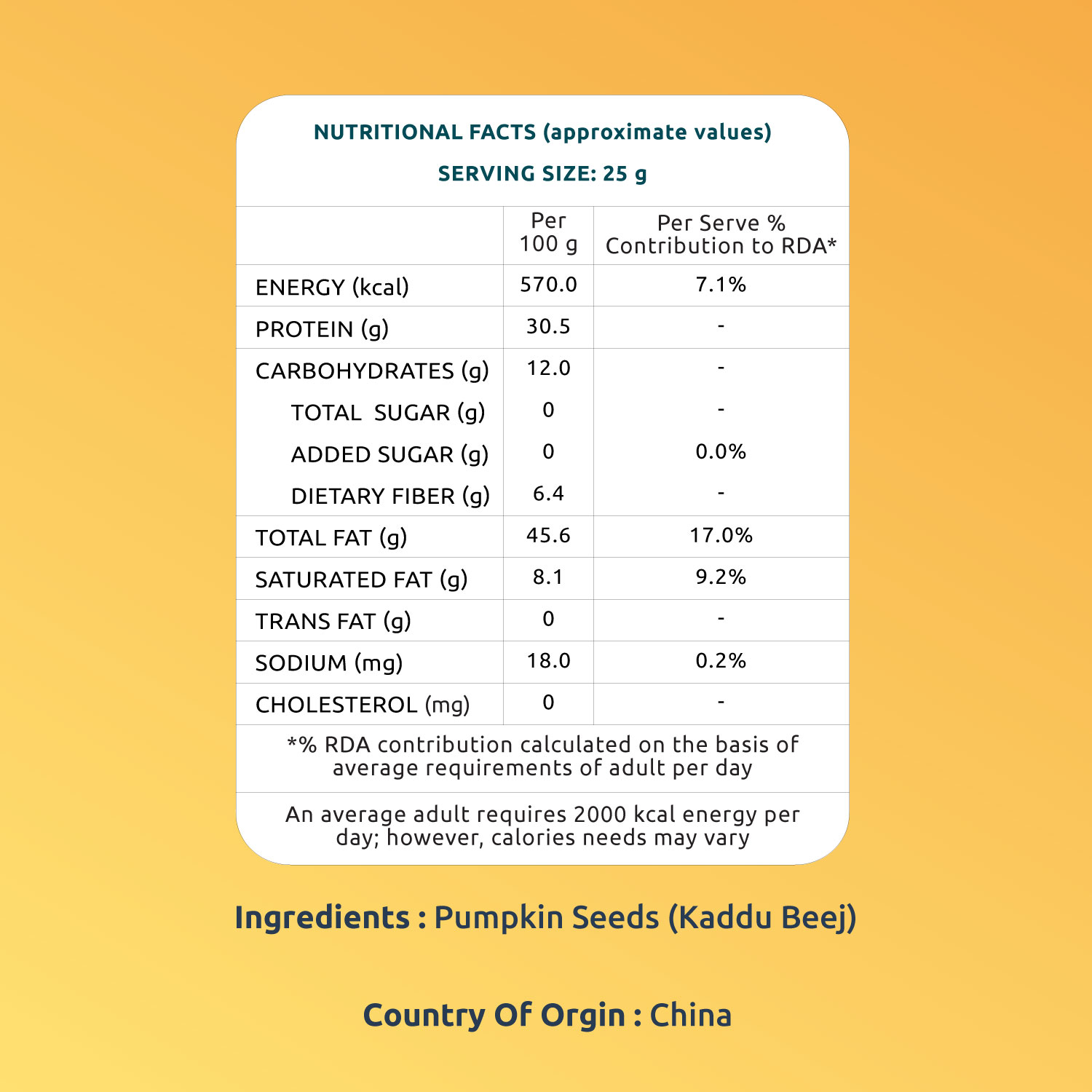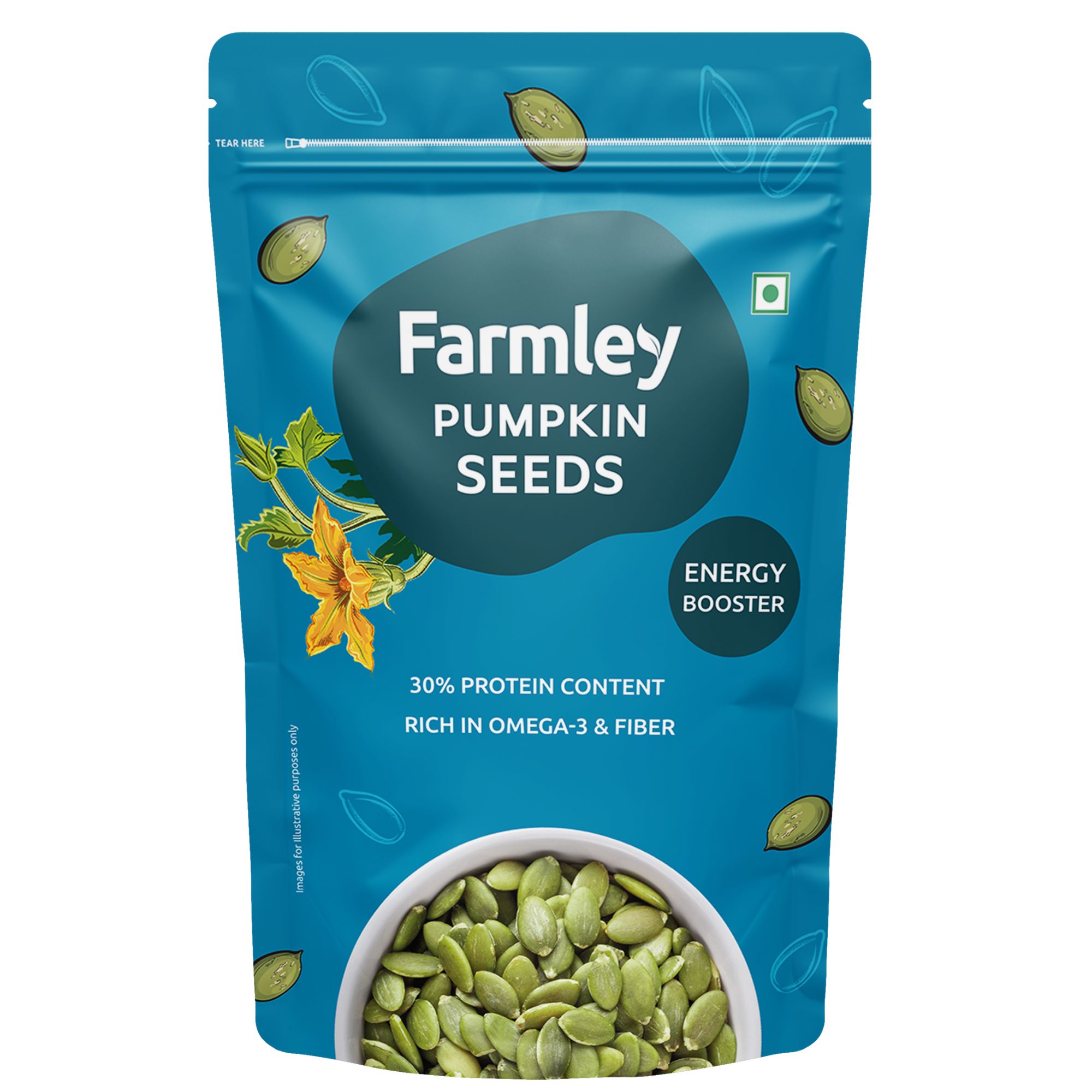 Pumpkin Seeds are a source of Healthy Fats, Magnesium, & Nutrients that enhance heart and bone health. They are also a good source of Antioxidants, which may help prevent any kind of cell damages. These seeds are high in Magnesium, which helps regulate blood sugar levels. Farmley's pumpkin seeds are RAW & free from adulteration.