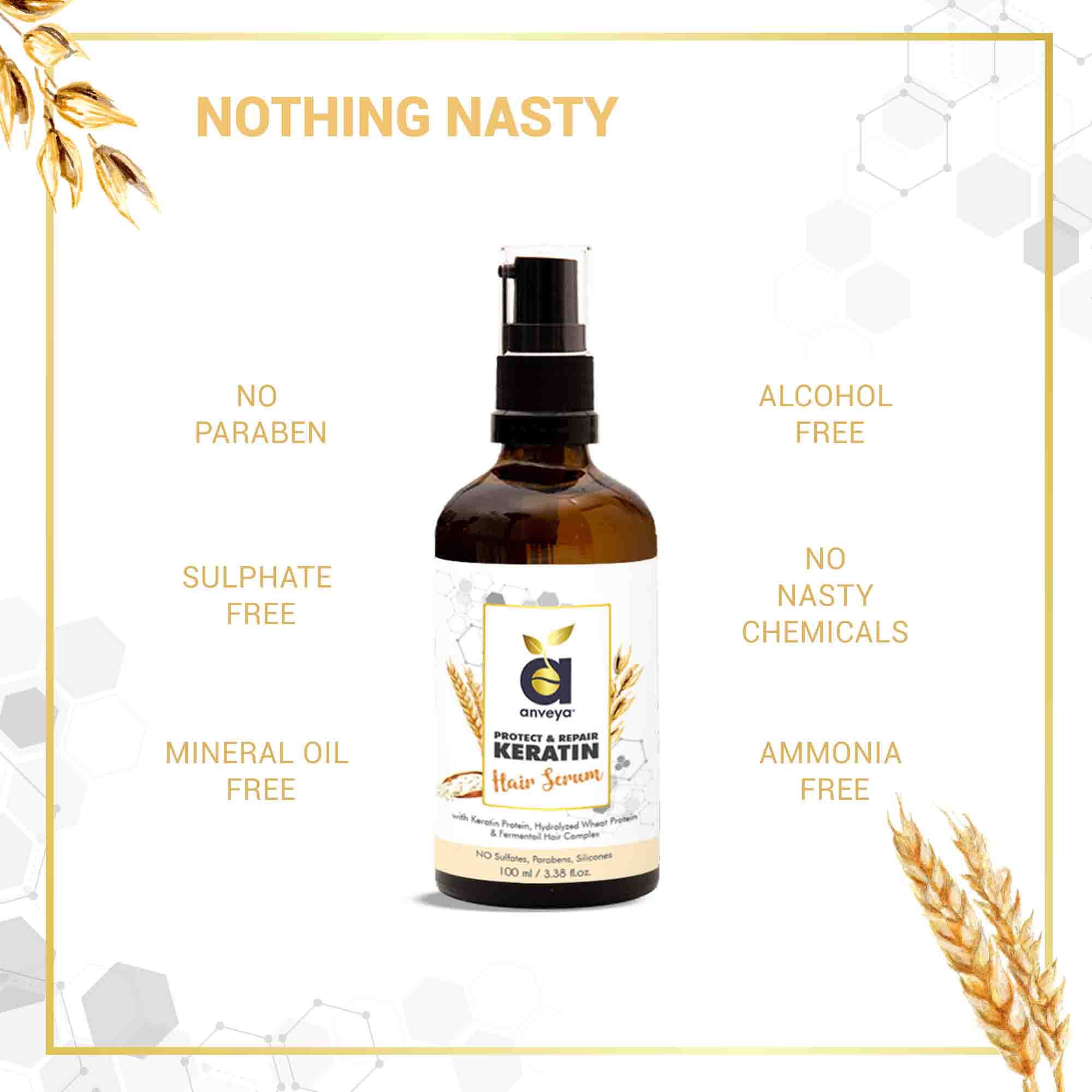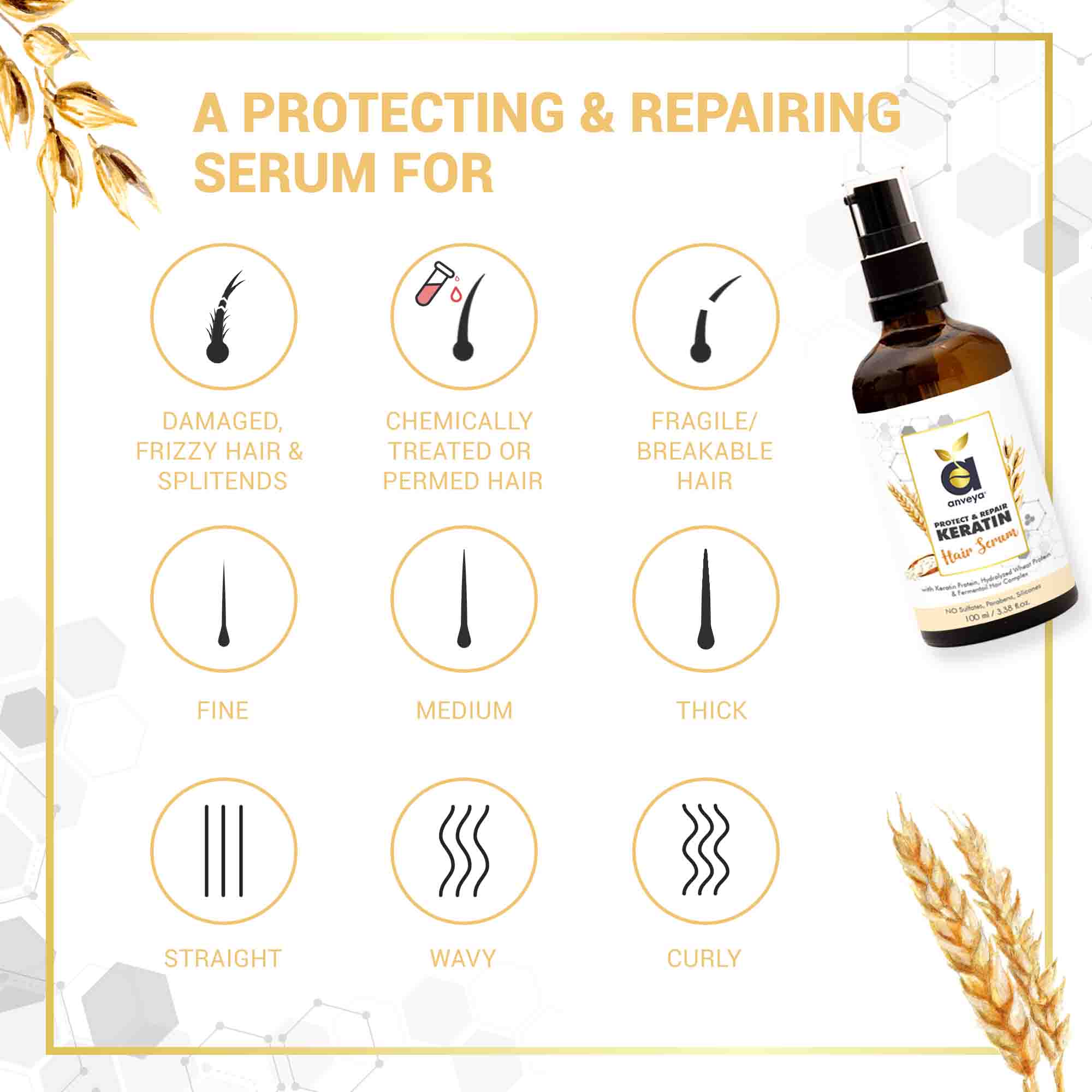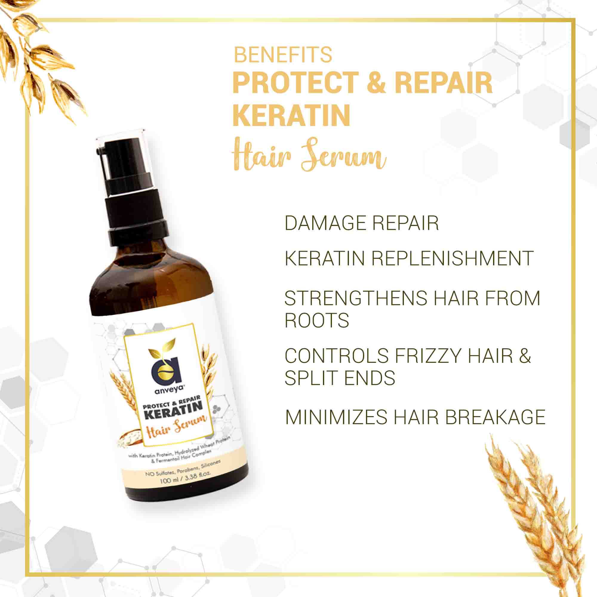 1. Protects hair from pollution, dryness, and damage due to hair treatments. Keeps the hair tangle free and controls split ends, keeping it supple & shiny throughout the day.