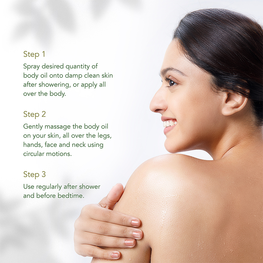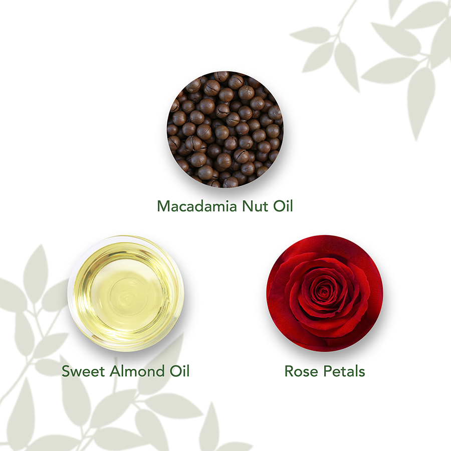 Indulge yourself in this unique blend of essential oils for a deeply nourished skin. Pure and gentle, it is a delight for your senses and satiates your skin's thirst by providing intense moisturisation, making it a perfect choice for dry skin. It boosts vitality, soothes senses and regenerates skin tissues. This Deep Moisturising Body Oil works great as an after-bath body oil or massage oil and helps you relax the body. Formulated with the goodness of ethically sourced Macadamia Nut Oil sourced from Australia, it is rich in Vitamin A, Squalene, Omega 7, and Vitamin E. It helps to minimize signs of ageing, boosts collagen and glides deep into the skin for healthy, intense nourishment. The body oil is infused with the cold-pressed Sweet Almond Oil which is loaded with Vitamin E and works on revitalizing skin and replenishing skin's natural moisture. Treat your body to wholesome goodness of pure Rose Petals that are rich in vitamins and minerals and render your skin with nourishment and senses with instant soothing.