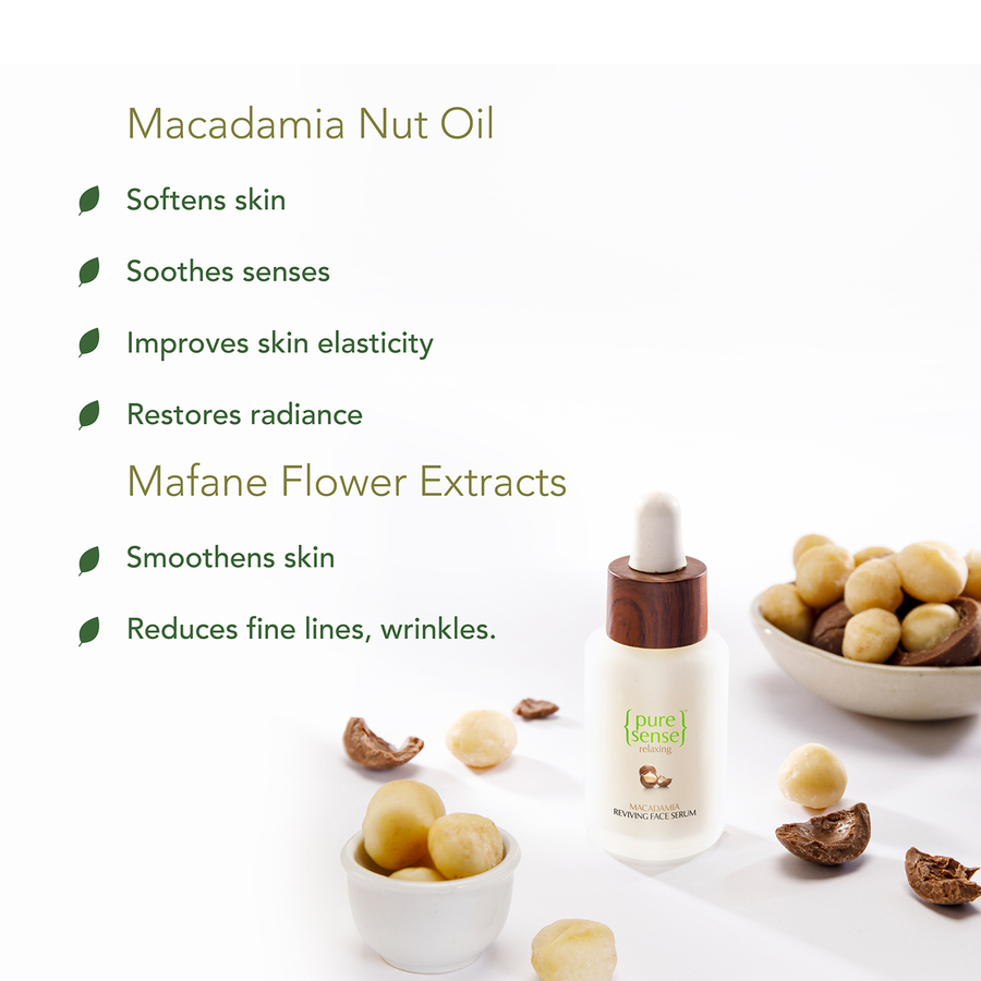 Pamper your skin with this nourishing face serum that glides on your skin effortlessly to provide a youthful radiance. Blended with pure flower extracts and exotic oils, it reduces the early signs of aging and boosts skin collagen. This pure formulation nourishes the skin and also helps to improve its texture. Formulated with Macadamia Nut Oil, this face serum is packed with Vitamin A and Vitamin C which moisturizes your skin. It is also rich in Oleic acid and Palmitoleic acid that repairs skin and works effectively on mature skin. This face serum is also infused with Mafane flower extracts which help to support the skins natural lipid barrier and stimulates skin cell function. It also preserves skin elasticity and has antioxidant qualities, which restores radiance and deliver your skin a tightening effect.