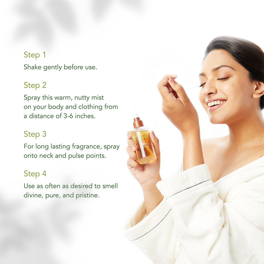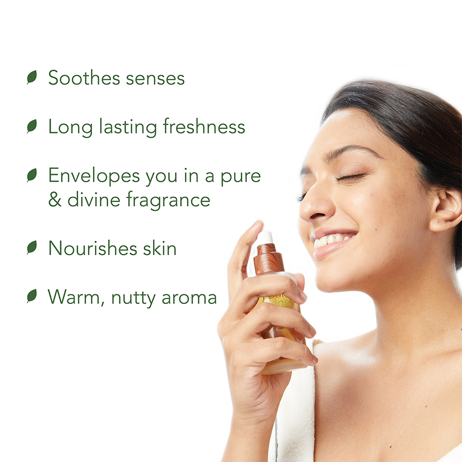 Mesmerise yourself with its subtle nutty scent as often as desired to smell divine and pure.