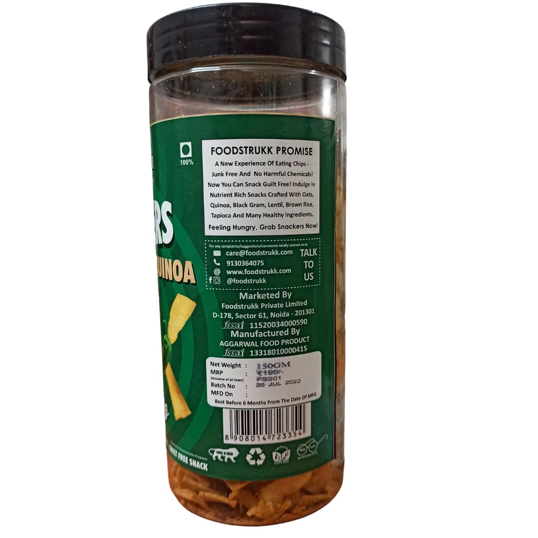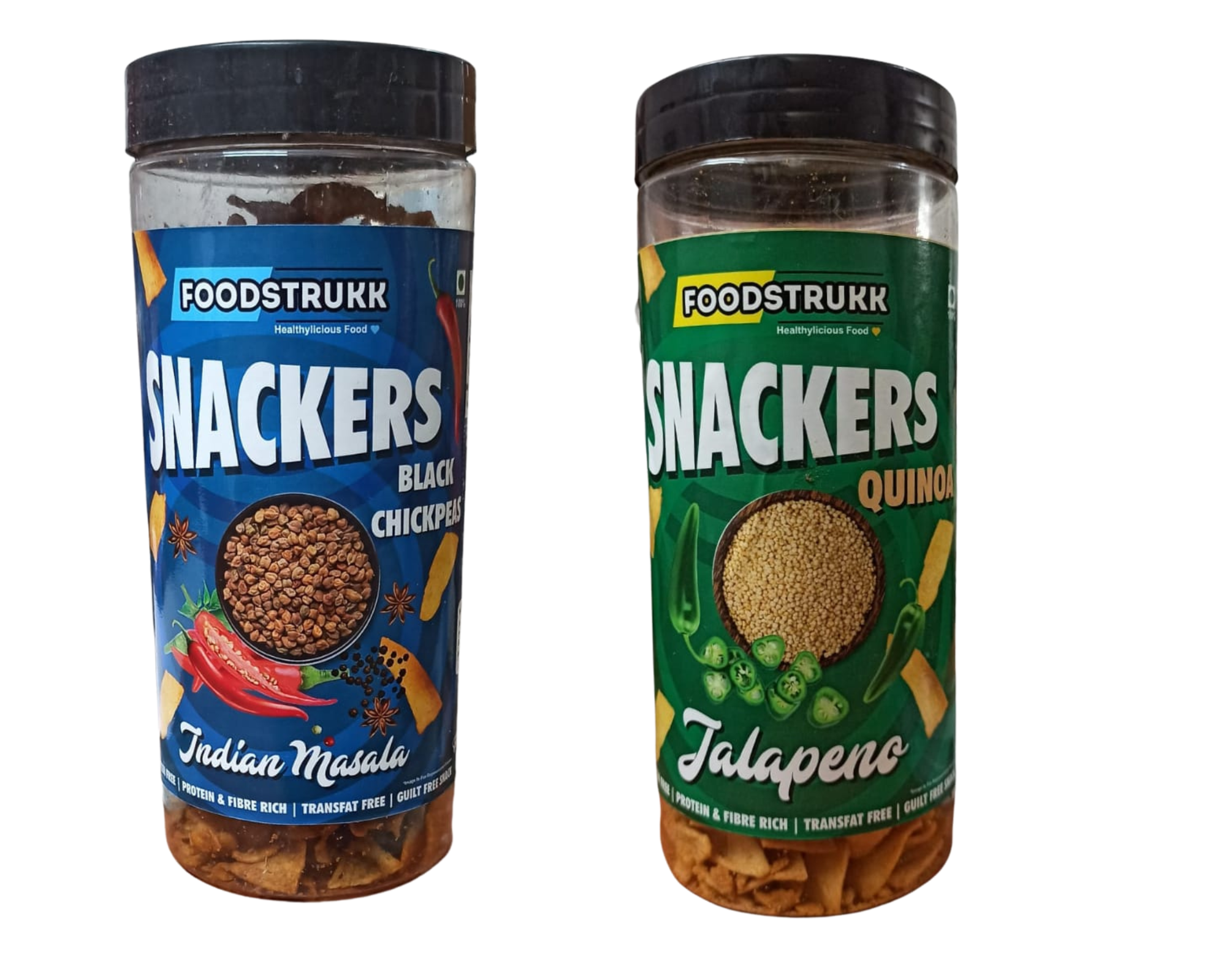 Foodstrukk Combo of Quinoa Jalapeno Snackers and Black Chickpeas Indian Masala Snackers are a new way of eating chips without guilt. A perfect healthy alternative to eating potato chips. Our snackers are made from millets and superfoods and contain no chemicals, preservatives, hpv, or junk. All our products are clean label and are made from only organic and natural ingredients.