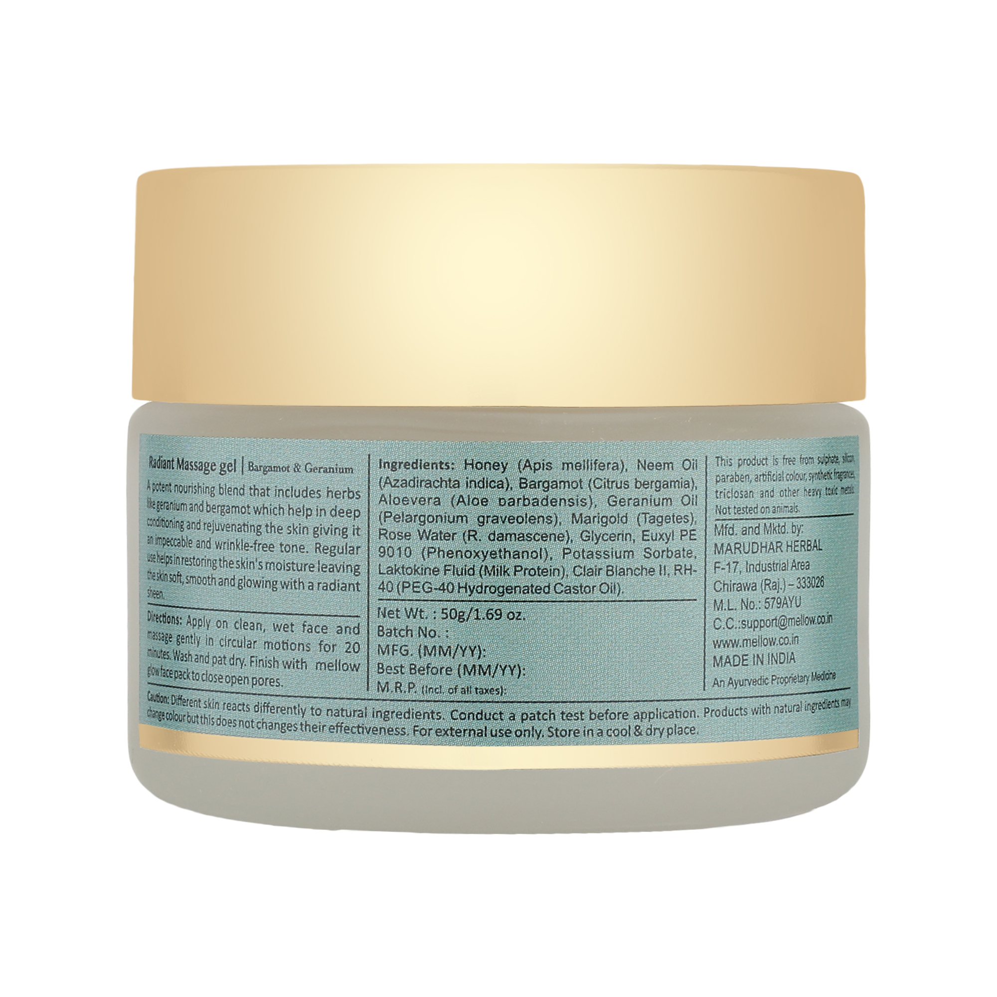 Mellows Radiant Massage Gel is a blend of naturally hydrating Aloe Vera Gel, and Honey, a natural humectant. The infusion of Bergamot and Geranium controls the uneven patches. The massage gel is perfect to use on oily skin as it has Neem Oil with antibacterial properties. It prevents clogging of pores. Marigold extracts to repair skin issues and revitalize dull skin. Radiant Massage Gel from Mellow is the best gel for deep tissue massage. Made with natural compounds, the massage gel effectively treats acne spots. The gel helps you keep hydrated and tightens the skin tissues.
