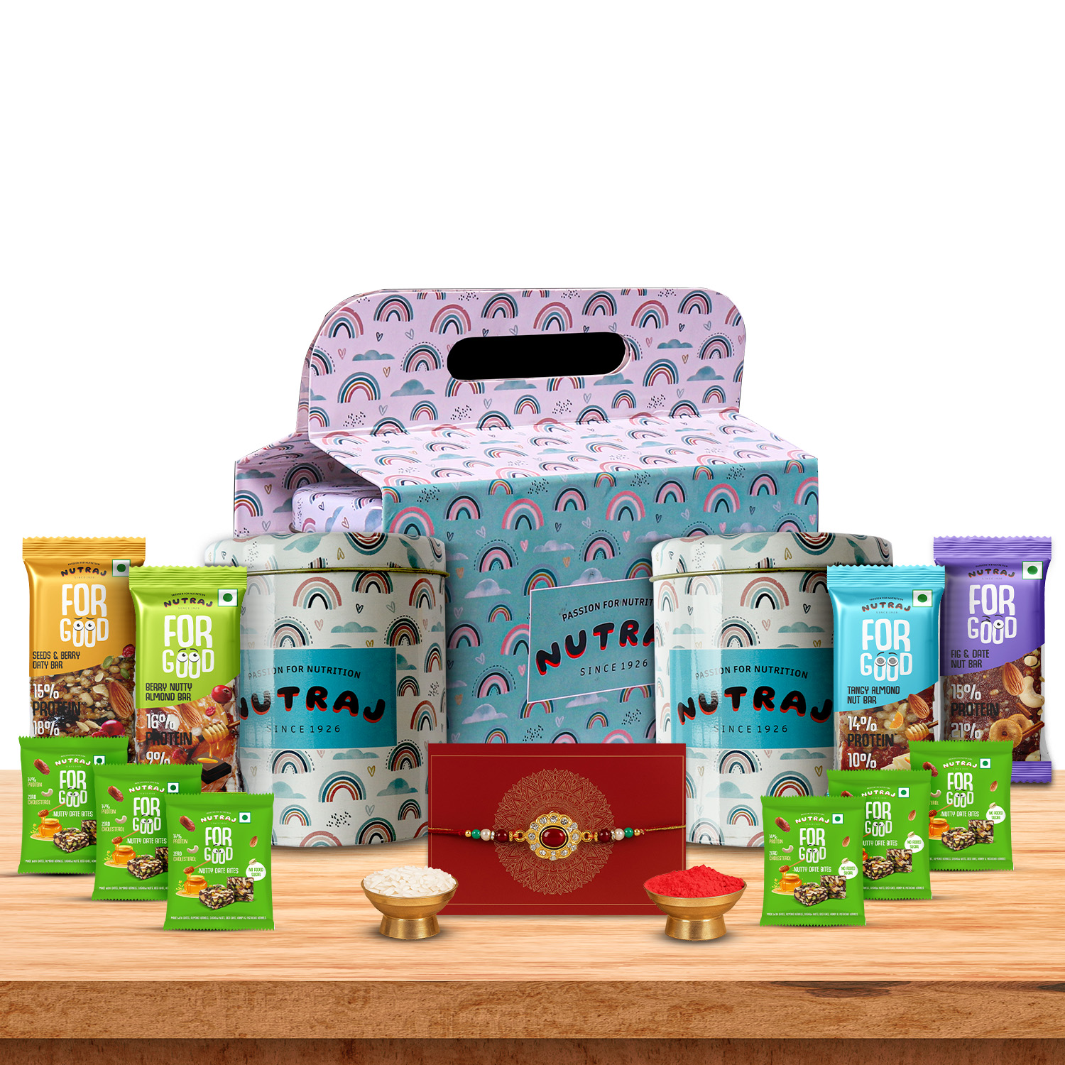 This Raksha Bandhan, gift your sibling more than just a Rakhi gift them love, health, and delight with the Nutraj Rakhi Gifting Hamper. Curated for joyful bites and guilt-free indulgence, this healthy Rakhi gift box includes: