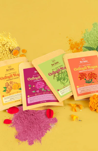100% natural, handmade, vibrant GULAAL made of flowers, leaves & fruits. Absolutely no chemicals or toxins. Completely safe even for kids. Let the Holi Raas begin! hey