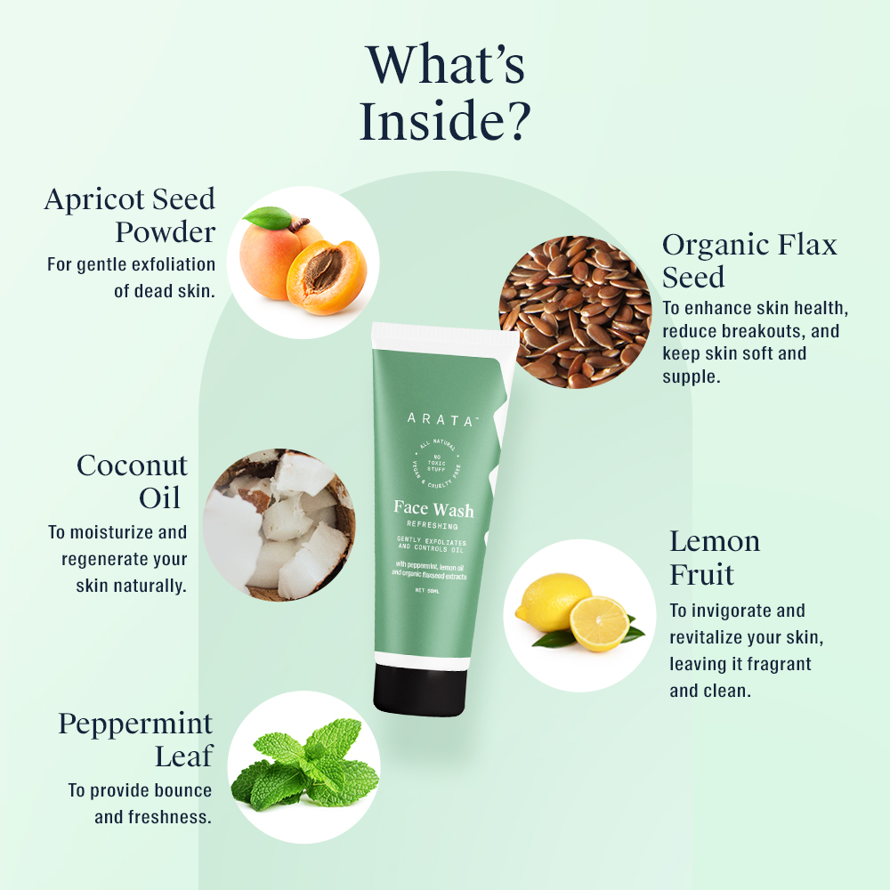 Organic Flax Seed, Apricot Seed Powder, Peppermint Leaf, Lemon Fruit, Coconut Oil