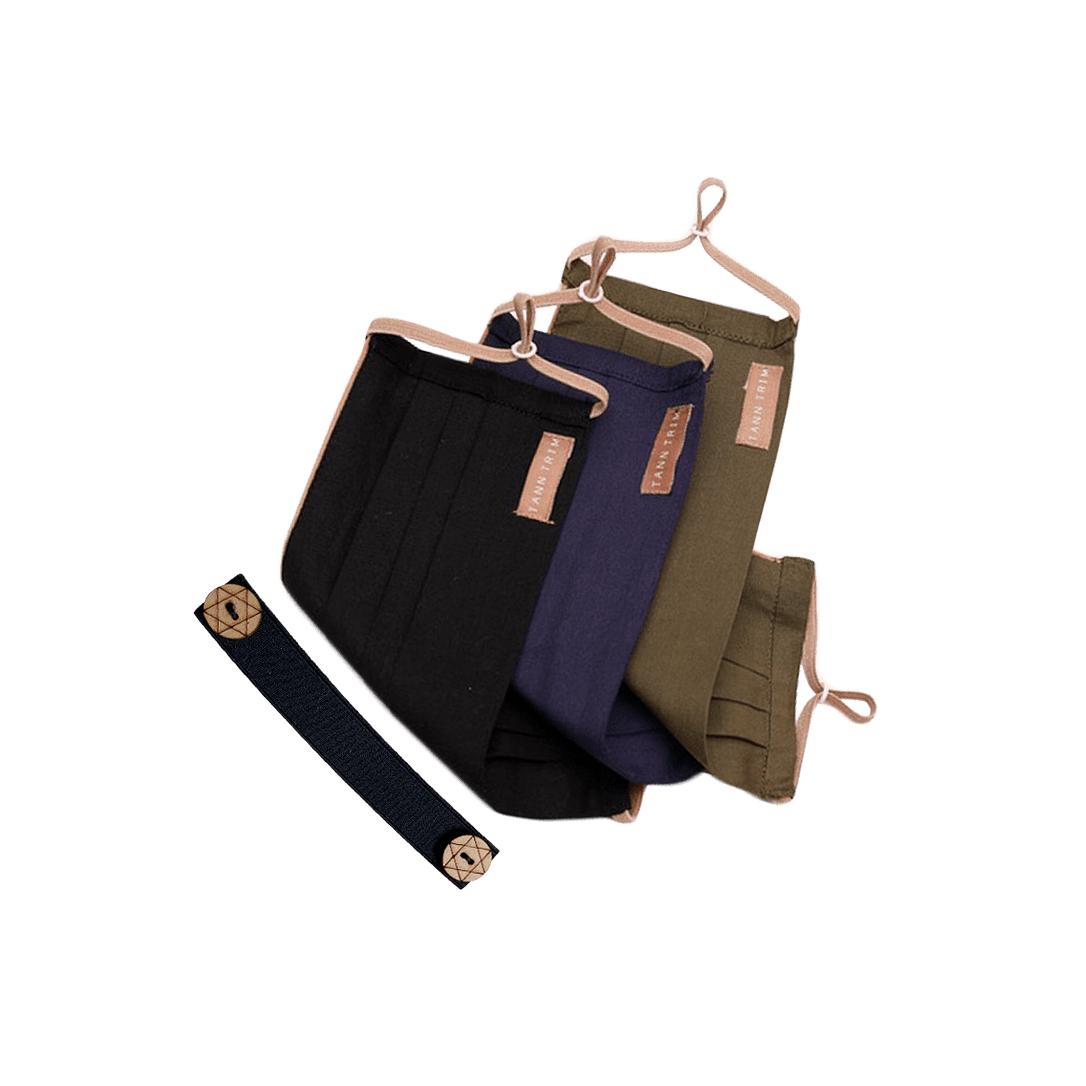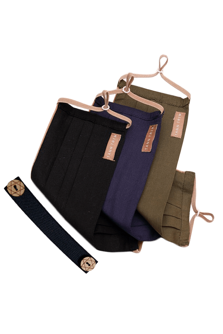 This product is made with 100% premium cotton, hand-crafted, breathable and reusable with signature details of tann colour piping and high quality elastic. It comes with a nose adjuster as well as with an elastic adjuster to give a comfortable fit. Also, this set of 3 comes in black, olive green and navy blue with elastic neckband. Pair this mask with our detachable mask chain. These made in properly sanitized production setups with artisans daily checked with temperature and proper treatment to avoid any kind of medical issues.