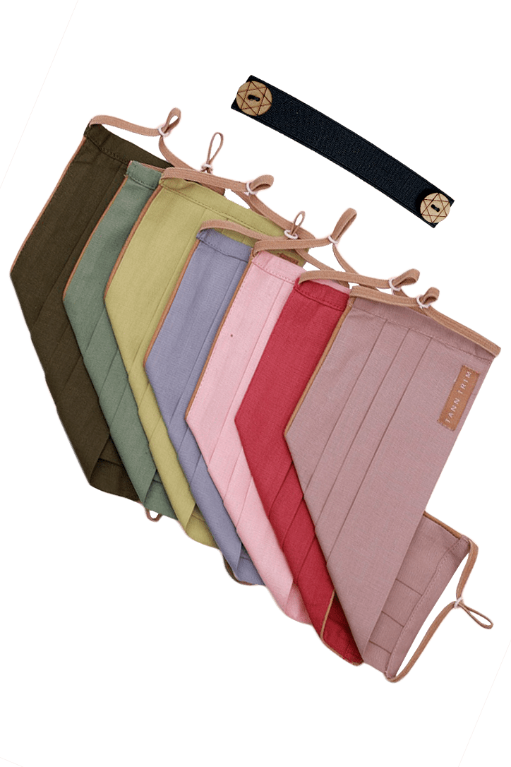 This product is made with 100% premium cotton, hand-crafted, breathable and reusable with signature details of tann colour piping and high quality elastic. It comes with a nose adjuster as well as with an elastic adjuster to give a comfortable fit. Also, this set of 6 comes in lime green, greyish blue, sage green, olive green, light pink, dark pink and lavender, with elastic neckband. Pair this mask with our detachable mask chain. These made in properly sanitized production setups with artisans daily checked with temperature and proper treatment to avoid any kind of medical issues.