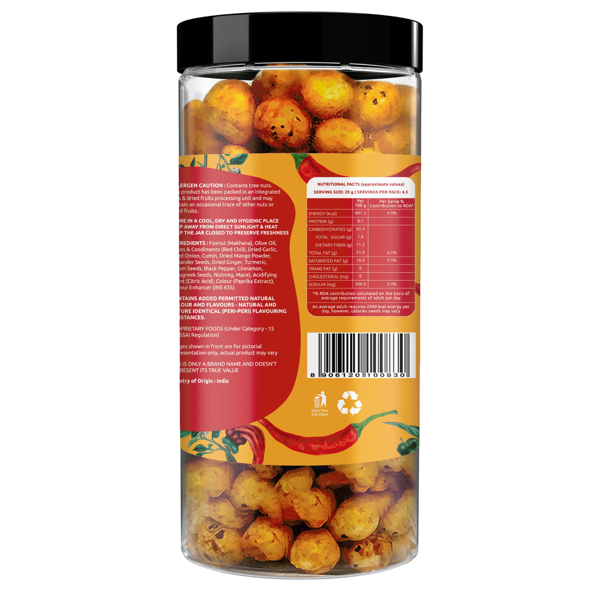 Enjoy yummy snacking: Farmley's Roasted Makhana, flavored with handpicked Peri-Peri and topped with deliciousness, welcomes you to the world of superfood snacking.