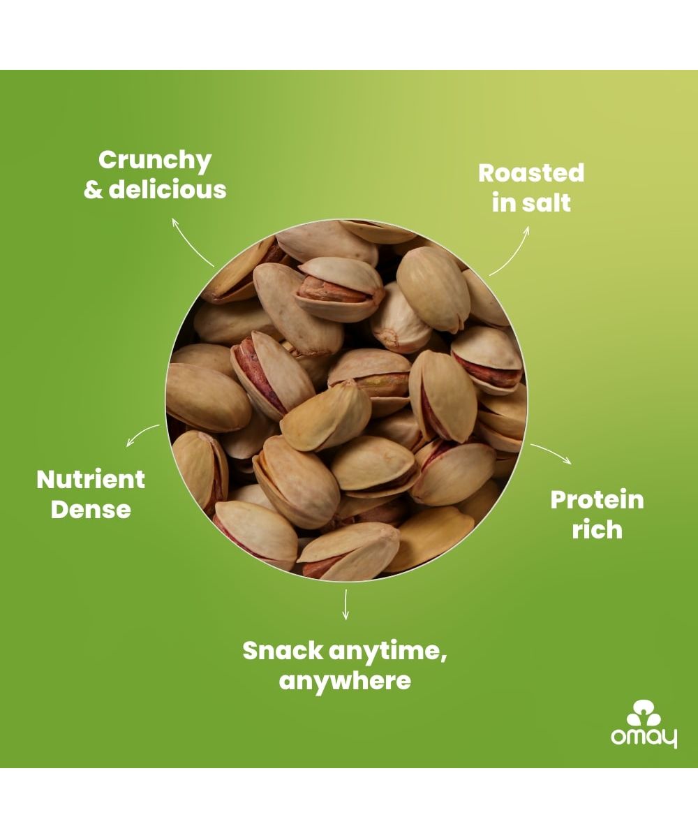 Made using Rajasthan's Roasting process, the Pistachio in this snack are COOKED IN SALT with no use of oil or butter. Omay's Pistachio is super delicious and a perfect blend of health and taste; binge on guilt-free, anytime anywhere. 100% roasted, non-fried snack.