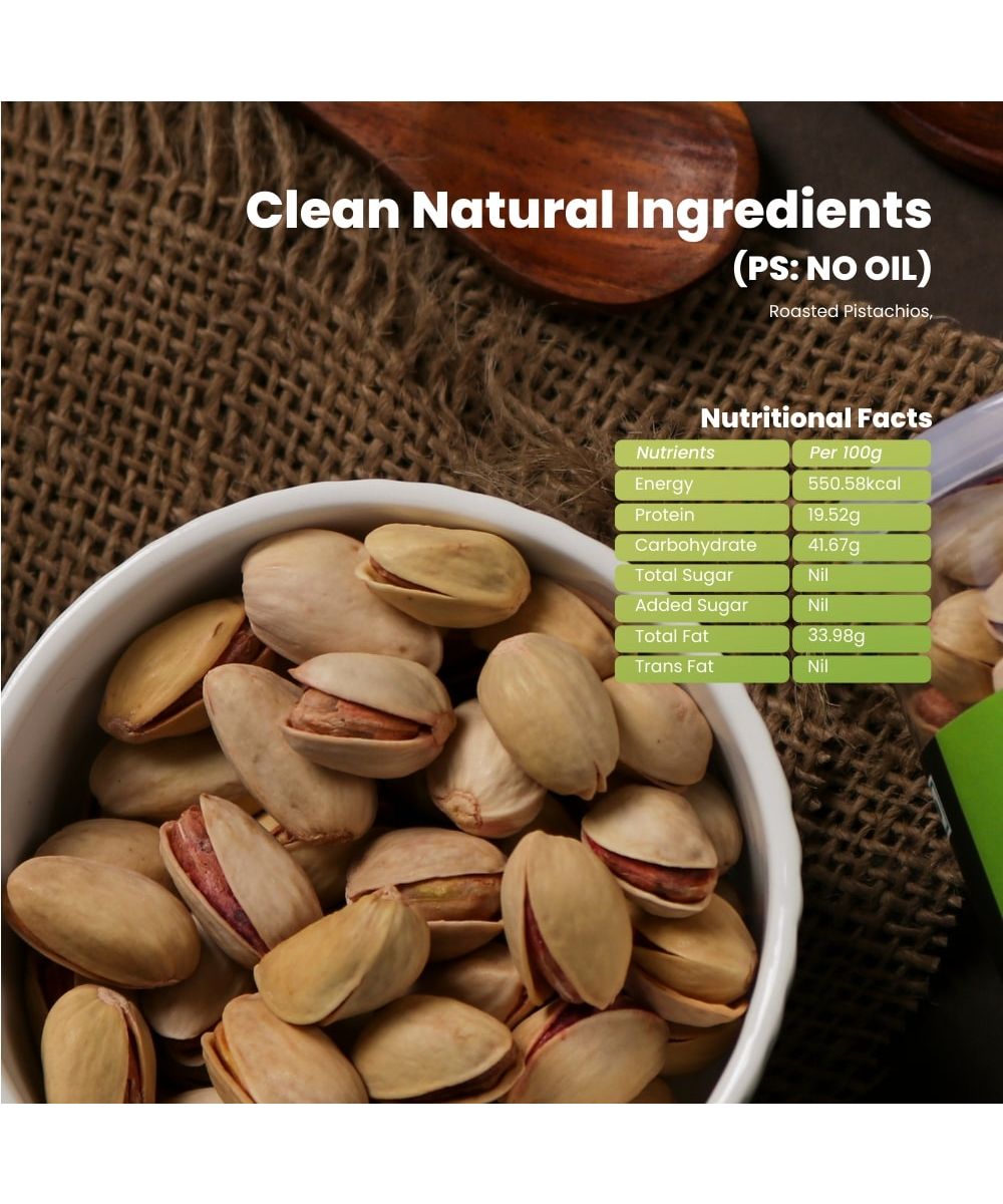 Roasted Pistachios: Crunchy tree nuts, Pistachios are a rich source of antioxidants, protein and fiber. It's. a crunchy treat for all-time snacking, especially during winter months.