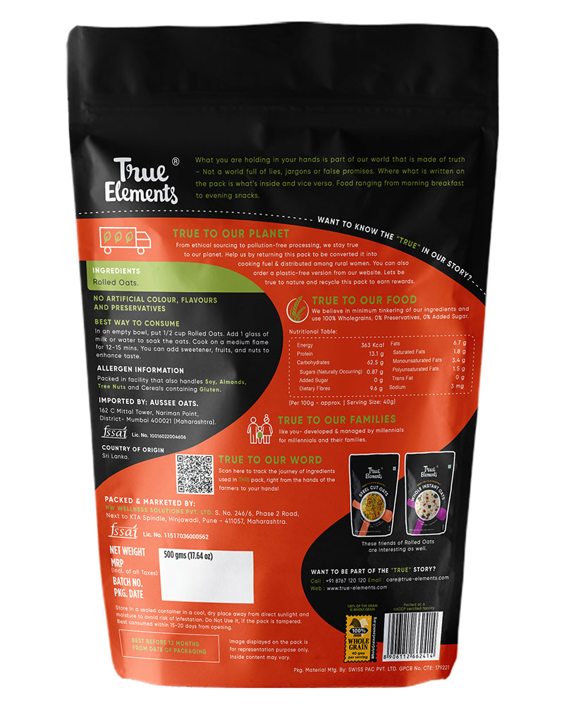 True Elements Rolled Oats are steamed, softened and then pressed between the rollers to form a rolled oat flake. Most of the people, especially kids, find oats pale and mushy. While there are some fitness freaks and athletes, who gaze upon the bowl of oats with dreamy eyes. Are you an oat lover? If not, here are a few reasons why you should take the oat oath and consume more of rolled oats.