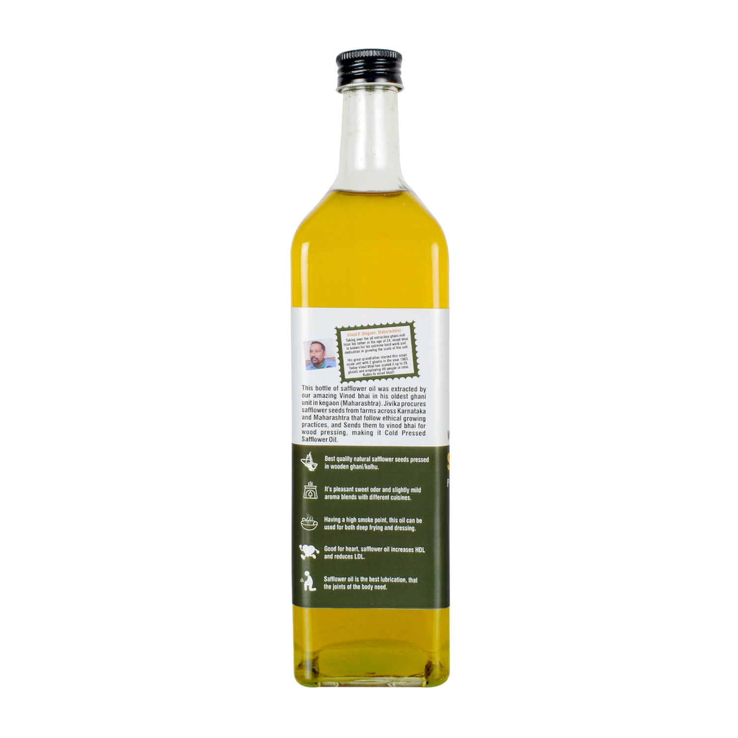 Our Cold Pressed Safflower Oil is 100% pure and unrefined. Extracted at a temperature of 45° C, it retains all the nutrients and aroma of the safflower seed. This nutritious cooking oil has a neutral flavour and can tolerate the extremely high temperatures of Indian cooking.