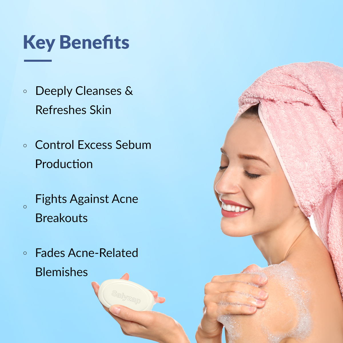 Salyzap Soap is a anti-acne formulation designed to address common skin concerns such as acne blemishes, pimples, blackheads, and whiteheads. Enriched with salicylic acid and triclosan, it provides a dual-action approach by gently exfoliating the skin and targeting acne-causing bacteria. Ideal for daily use, it targets all root causes of acne for optimal long-lasting results.