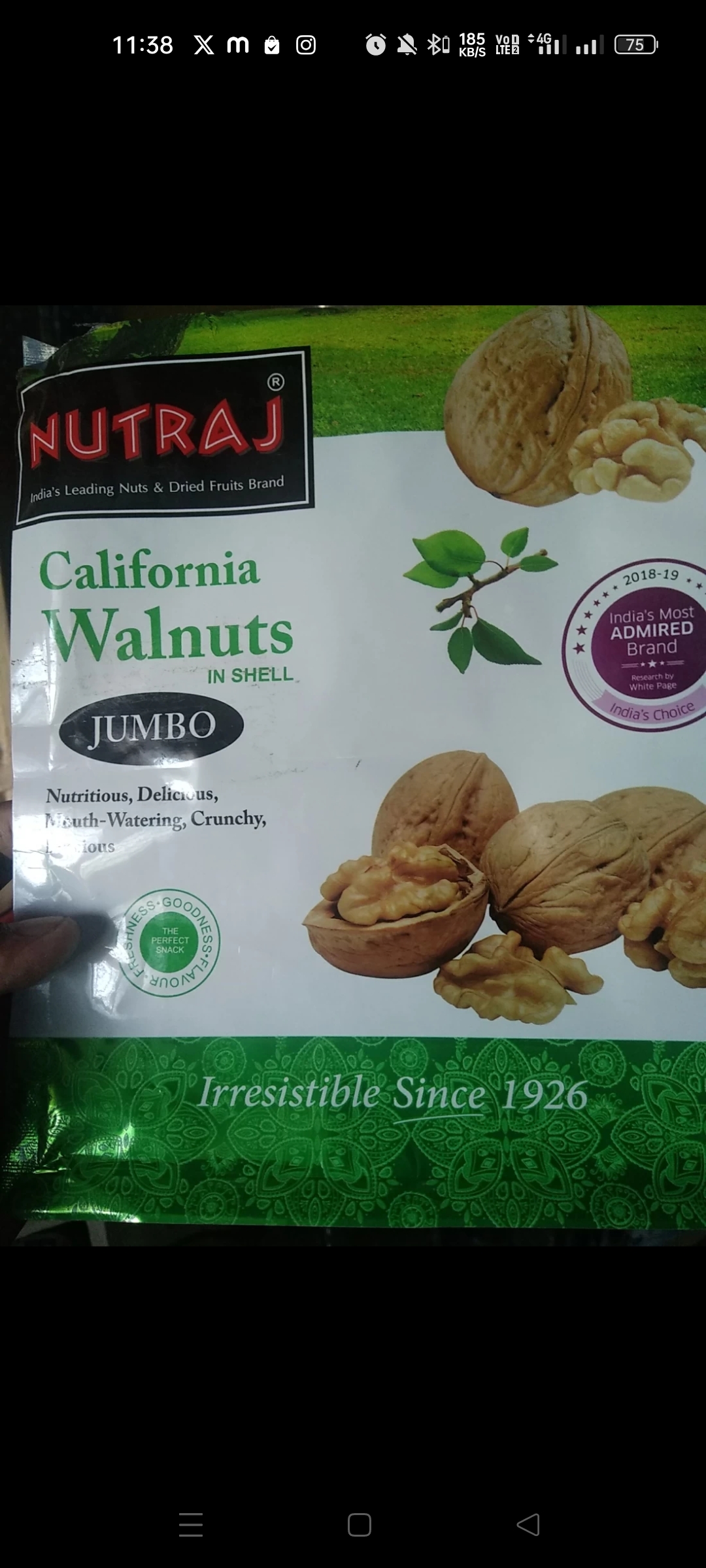 The Nutraj California Inshell Walnuts (Akhort) are the best Healthy Snack that not only has a better flavor, freshness and better color, it also has immense health benefits compared to other types of Walnuts. They are plant based, purely vegetarian and do not contain any GMO. California Walnuts (Akhort) are good for the skin as they are packed with vitamin B. You can go solo snacking on these tasty and crunchy walnuts being guilt free knowing their health benefits.
