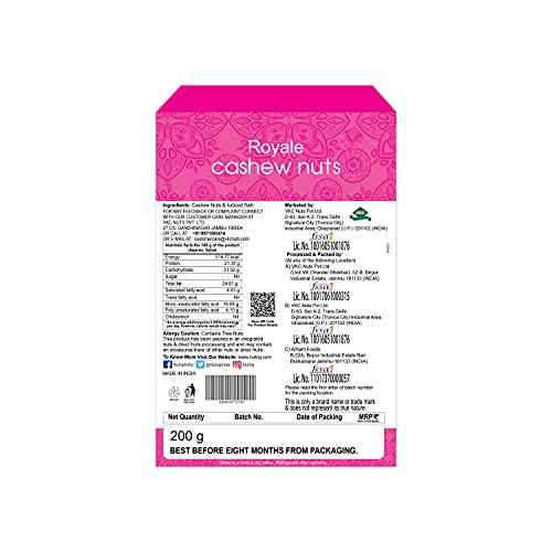 Nutraj Signature Cashew Nuts (Plain) W240 - Pack of 2 - 200gm